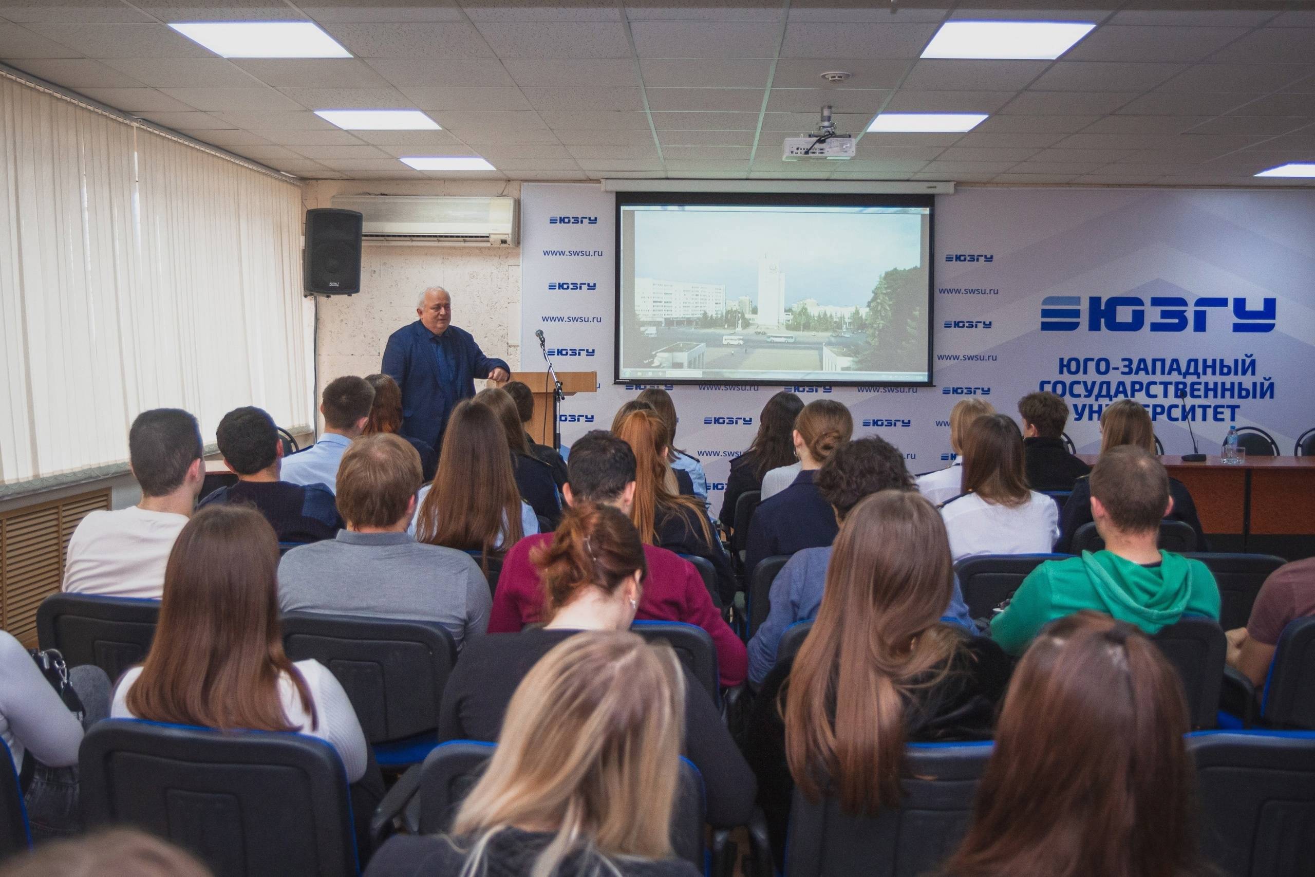 Для студентов организовали тематическую выставку, показали им документальный фильм «Рубежи обороны. Курск.1941-й». В съемках картины принимал участие председатель Совета регионального отделения РВИО, профессор Владимир Коровин. Он рассказал ребятам о формировании народного ополчения для защиты города осенью 1941 года.