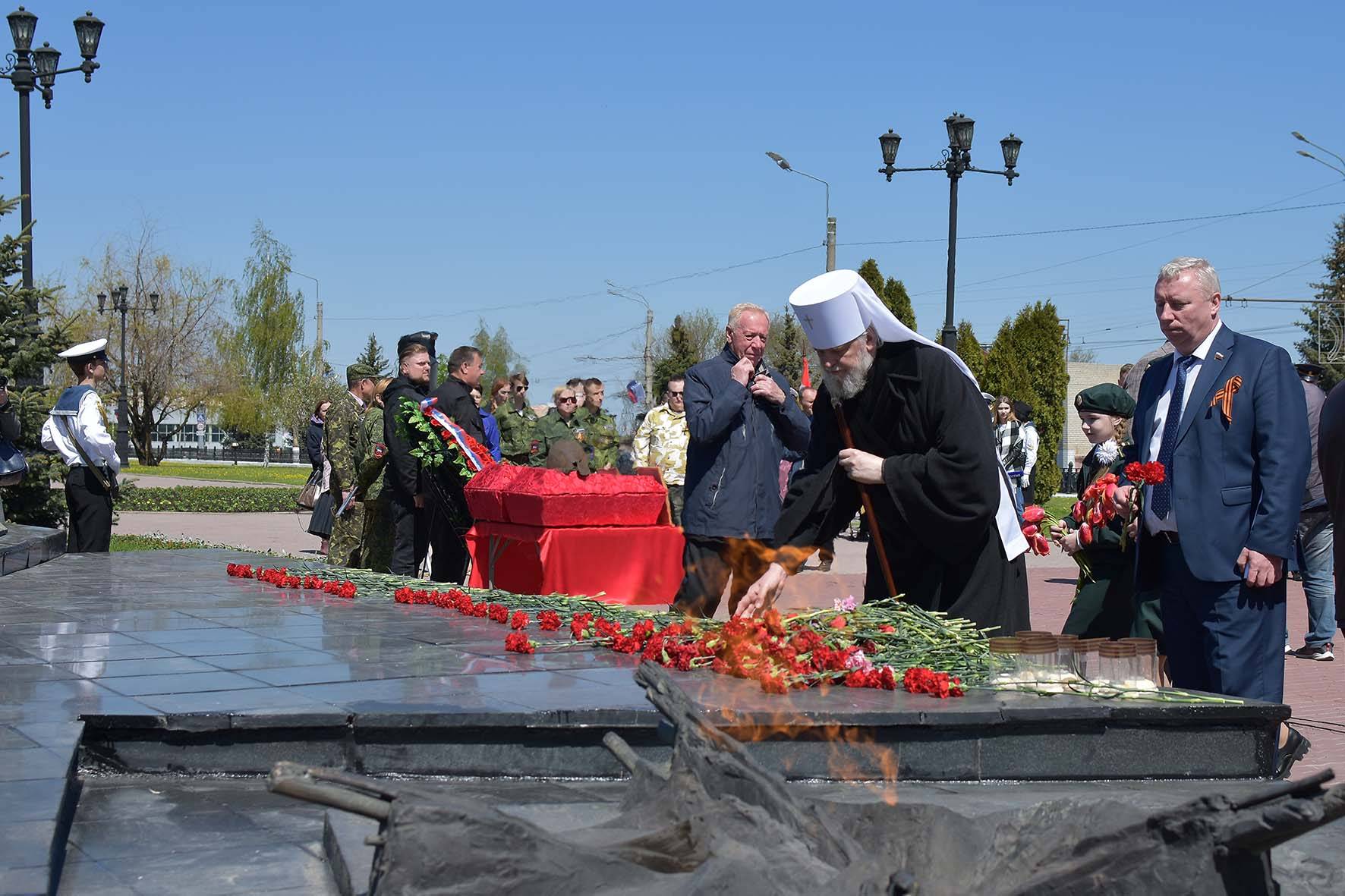 На митинге по случаю передачи останков павших героев выступили заместитель председателя Курской областной Думы Константин Комков, заместитель председателя Государственной Думы Борис Чернышов, председатель областного Совета ветеранов, член РВИО Геннадий Ветров, командир поискового отряда «Курган», член РВИО Алексей Сотников, председатель Совета регионального отделения «Поискового движения России» в Ставропольском крае Григорий Касмынин.