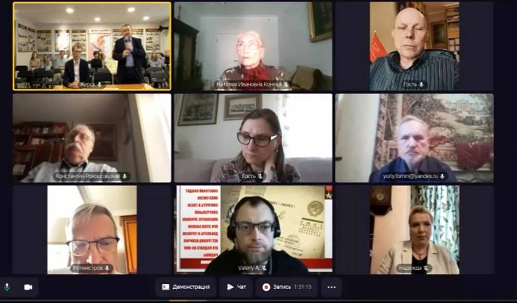 В ходе видеоконференции были заслушаны проникновенные и запоминающиеся рассказы о боевом пути Героев Советского Союза в период Курской битвы, сделаны выводы о роли этого сражения как во Второй мировой, так и Великой Отечественной войн. В заключение профессор К.В. Яценко отметил, что «…мы должны защищать историю войны от попыток ее фальсифицировать, от попыток ее извратить, представить совершенно в ином свете, сказать, что подвиги наших предков быть отнюдь незначимыми и вообще-то это война была двух тоталитарных режимов, когда слушаешь это, конечно, возмущение охватывает любого патриота…» Завершая свое выступление Константин Владимирович обратился к потомкам полководцев Победы с просьбой не прекращать борьбу за историческую память: «Нам историкам и вам, родственникам Героев Советского Союза, нужно вместе бороться за сохранение памяти о Великой Отечественной войне, для подрастающего поколения важно защитить нашу общую историческую память и сохранить правдивые истории о подвиге наших солдат в Великой Отечественной войне».