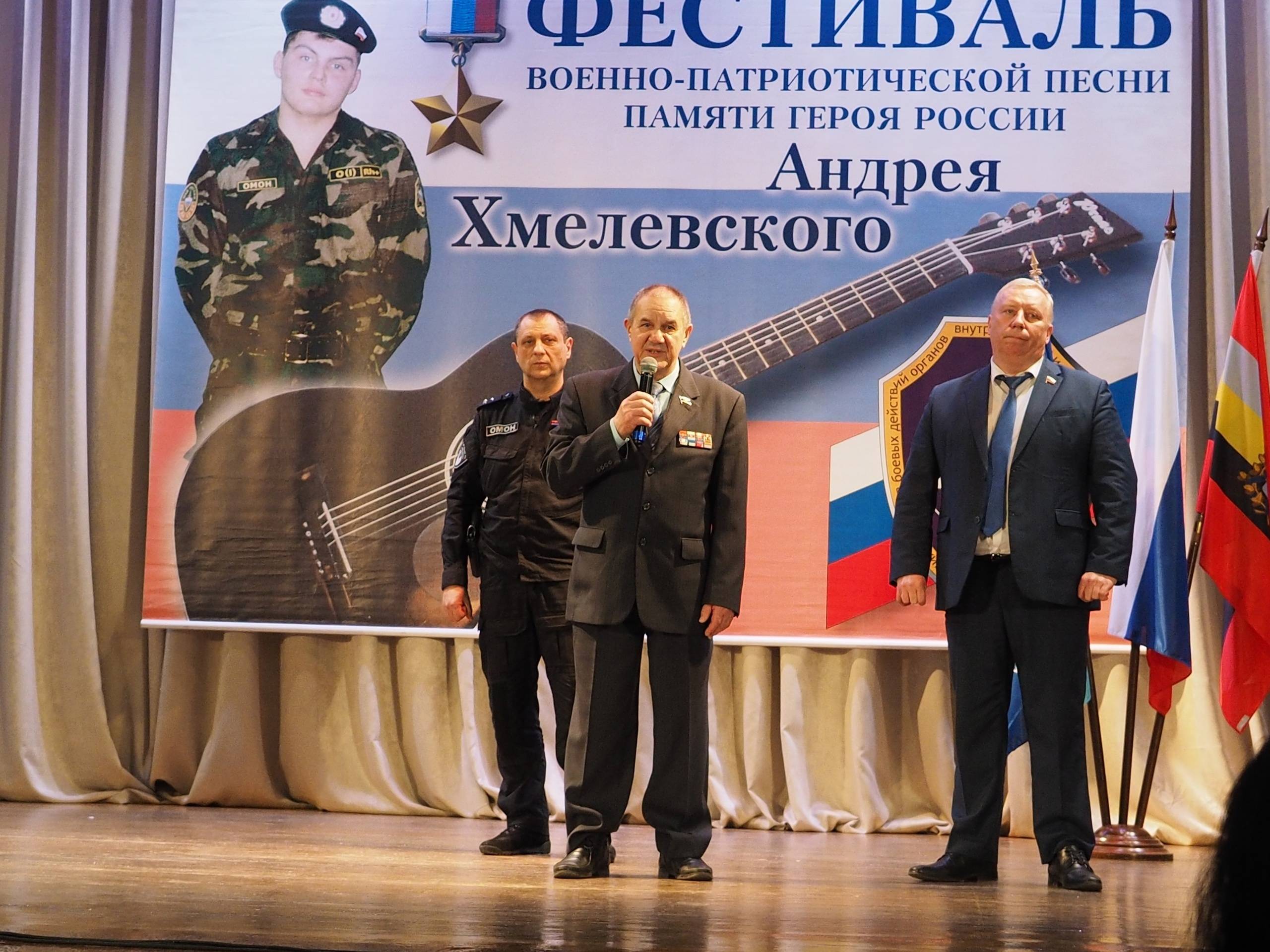 Участников Гала-концерта приветствовал директор Дворца пионеров и школьников г. Курска, член РО РВИО А.П. Трубников. Александр Петрович подчеркнул большую значимость фестиваля в воспитании сегодняшних подростков и молодежи, отметил, что подвиг Андрея Хмелевского является маяком, ориентиром для нескольких поколений курян, образцом активной жизненной позиции, правильного поведения, беззаветной любви к своей Родине, самопожертвования и мужества. Также Трубников А.П. поблагодарил Ирину Николаевну за большую работу по военно-патриотическому воспитанию молодого поколения и поддержку фестиваля.