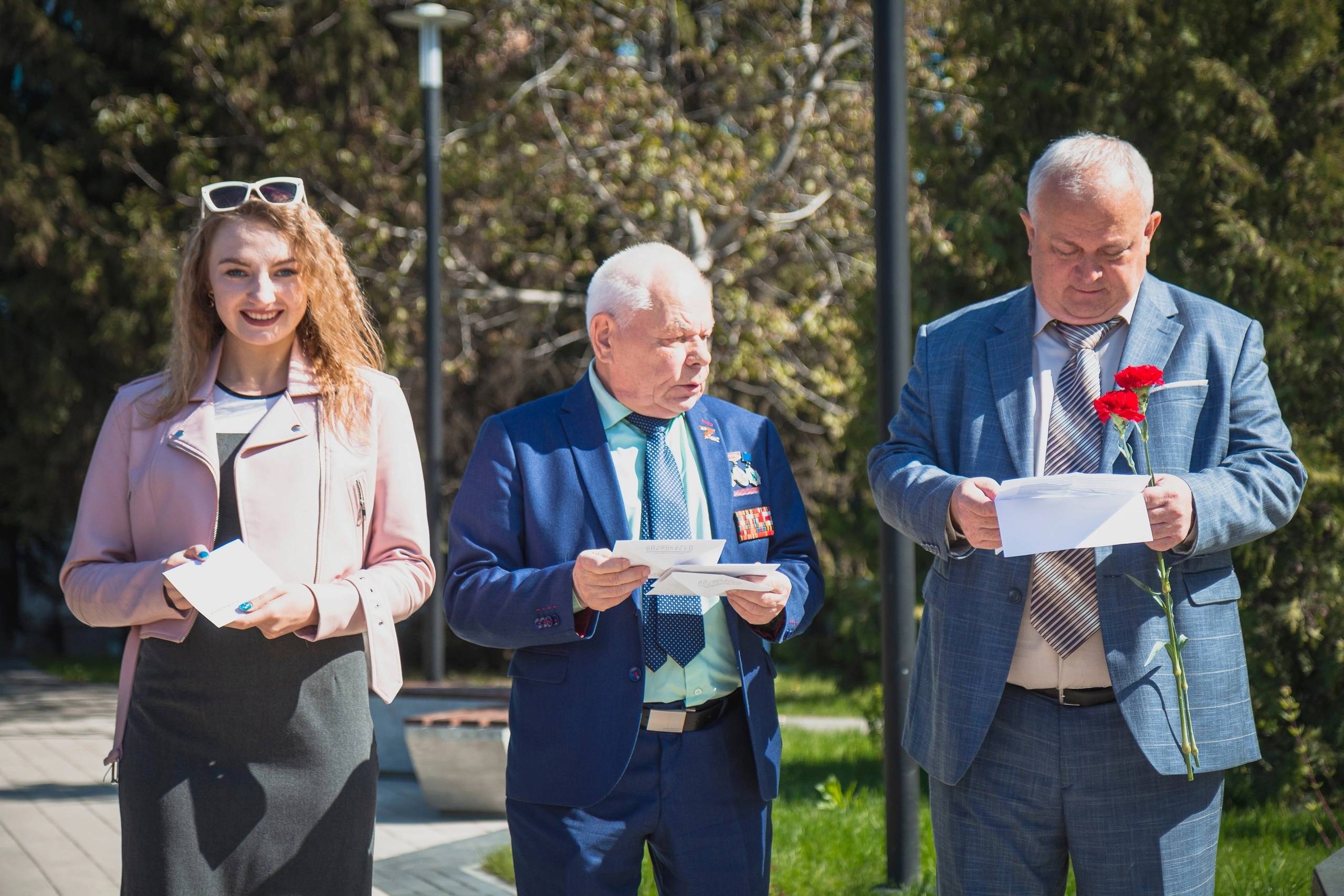 Перед открытием фотовыставки Председатель Курского городского Совета ветеранов И. В. Малков наградил членов регионального отделения РВИО, активистов студенческого патриотического клуба«Порубежник», студентов и сотрудников ЮЗГУ медалями Министерства обороны РФ «За заслуги в увековечении памяти погибших защитников Отечества».