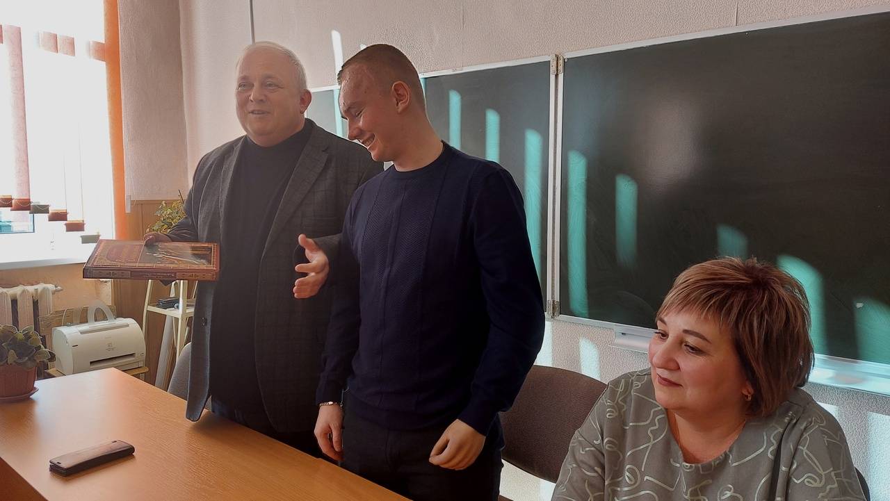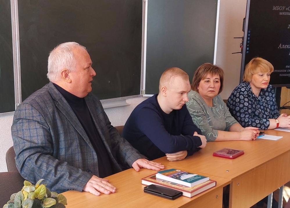 Директор школы Н.М. Котельникова и классный руководитель Алексея С.А. Цыполева рассказали собравшимся о том, каким он был учеником. Об ответственном отношении к учебе, о серьезном увлечении спортом, об активной жизненной позиции. Заводилой многих классных дел назвала своего бывшего ученика Светлана Александровна. Сам герой встречи – человек скромный, светлый и открытый, с большим уважением отзывался о своих педагогах. Алексей поделился воспоминаниями о школьном детстве и выборе жизненного пути, о службе в Воздушно-десантных войсках и участии в спецоперации. Многие мысли, озвученные 21-летним ветераном боевых действий, свидетельствуют о том, как быстро взрослеют совсем юные защитники Родины, как не словом, а делом смогли доказать они свою безграничную любовь к Отчизне и верность традициям предков, какой важный урок патриотизма они преподносят подрастающему поколению сегодня.