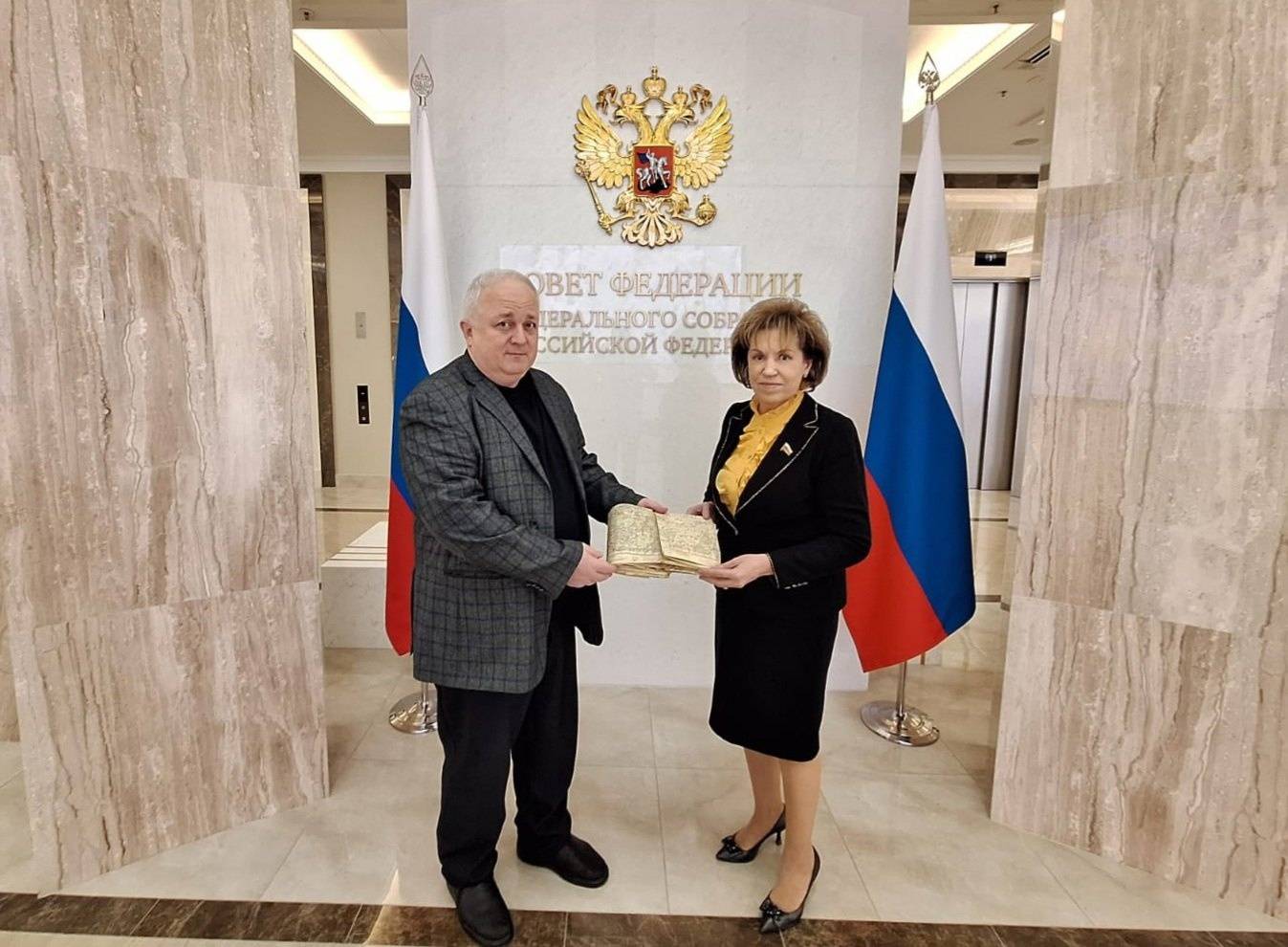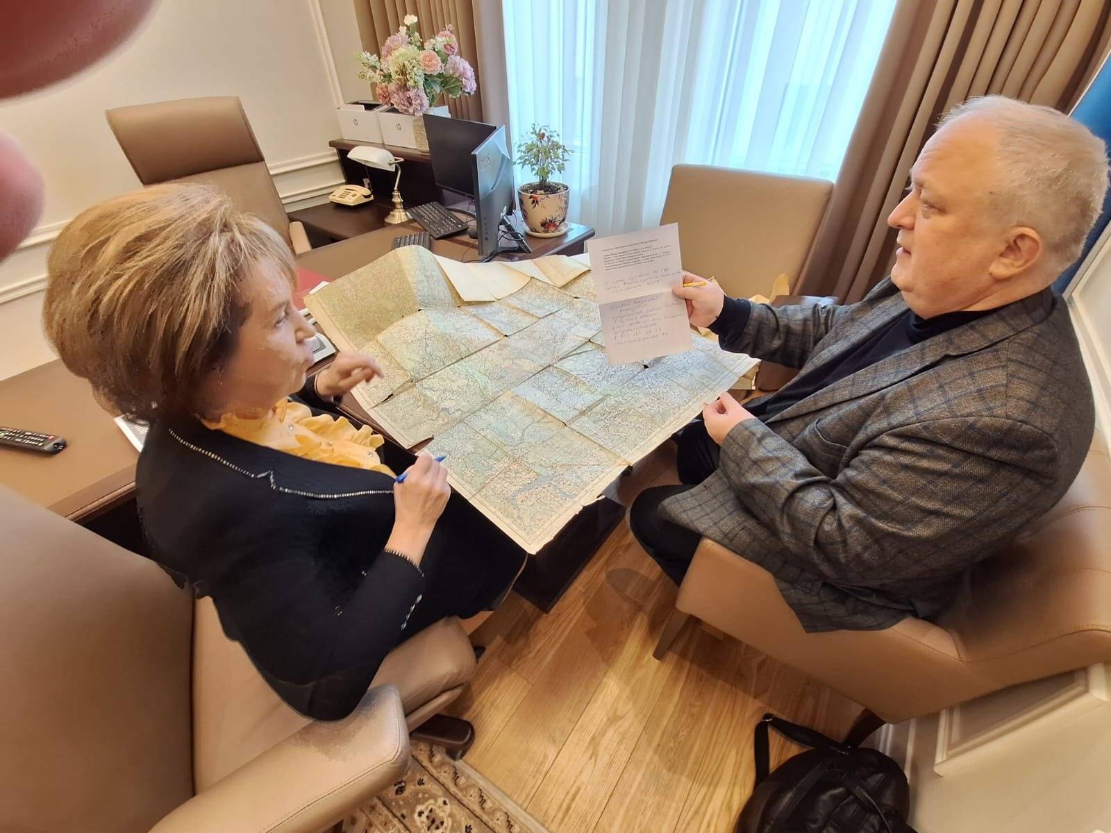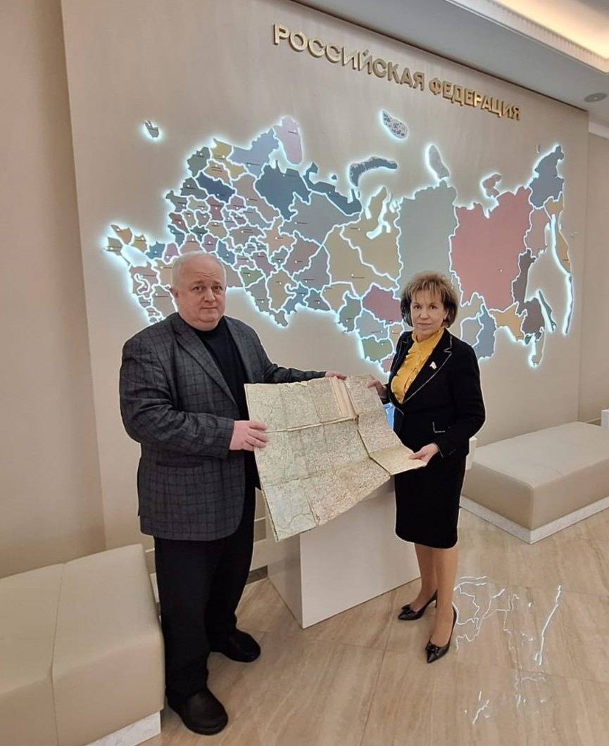4 марта в Совете Федерации Федерального Собрания РФ состоялась встреча председателя Совета РО РВИО в Курской области, профессора ЮЗГУ В.В.Коровина и сенатора от Тверской области, председателя регионального отделения РВИО в Тверской области Л.Н.Скаковской. Участники обсудили вопросы межрегионального взаимодействия в рамках деятельности РВИО. В дар коллегам из Твери была передана довоенная подробная карта с населенными пунктами Калининской области из семейного архива члена РО РВИО в Курской области, доцента ЮЗГУ С.А.Никифорова.