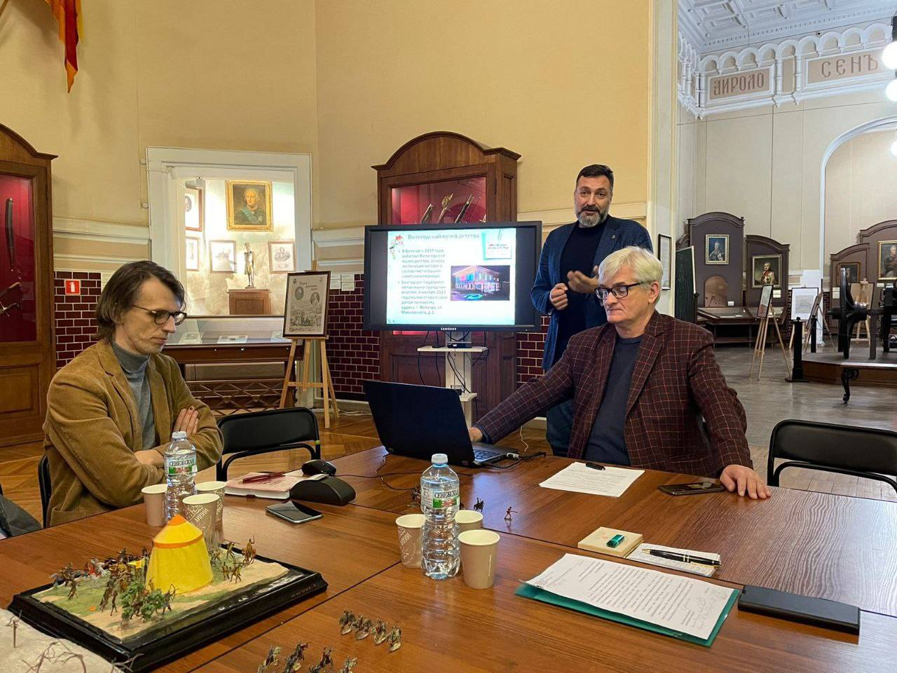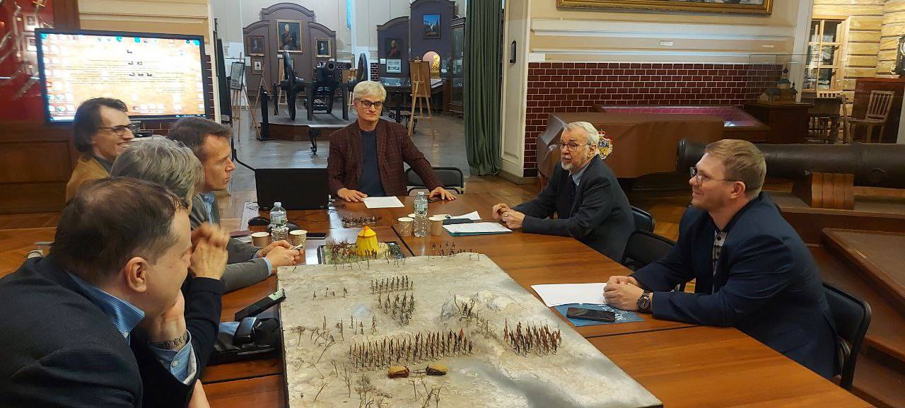 С участниками круглого стола уникальными материалами из истории оловянной миниатюры поделился заместитель директора Государственного Эрмитажа по научной работе, Председатель Геральдического совета при Президенте Российской Федерации — государственный герольдмейстер, доктор исторических наук Георгий Вадимович Вилинбахов. Собравшимся были представлены несколько чудом сохранившихся фигурок воинов из пропавшего набора «Ледовое побоище», подробно рассказана история этого макета и его судьба.