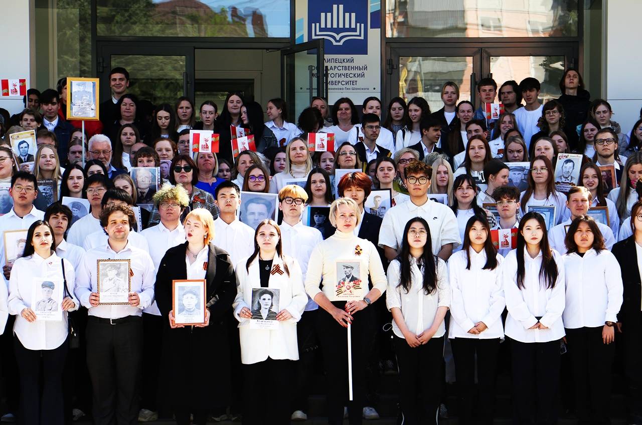 Студенты и преподаватели Липецкого педуниверситета, представители общественных организаций, иностранные студенты из Китая, жители города прошли маршем с портретами своих родных и близких, ковавших нашу Победу на полях сражений и в тылу!