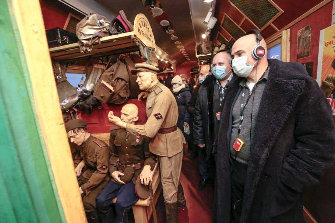 Глава региона Игорь Артамонов посетил выставку передвижного музея «Поезд Победы», который прибыл в Елец рано утром. Это иммерсивная инсталляция, размещенная в девяти вагонах поезда. Выставка посвящена событиям предвоенных лет и времен Великой Отечественной войны. Первые посетители, в основном, школьники, уже осмотрели выставку. К экскурсионной группе присоединились глава региона и глава Елецкого района. С помощью аудиогида они совершили историческое путешествие и вспомнили важнейшие события военных лет.