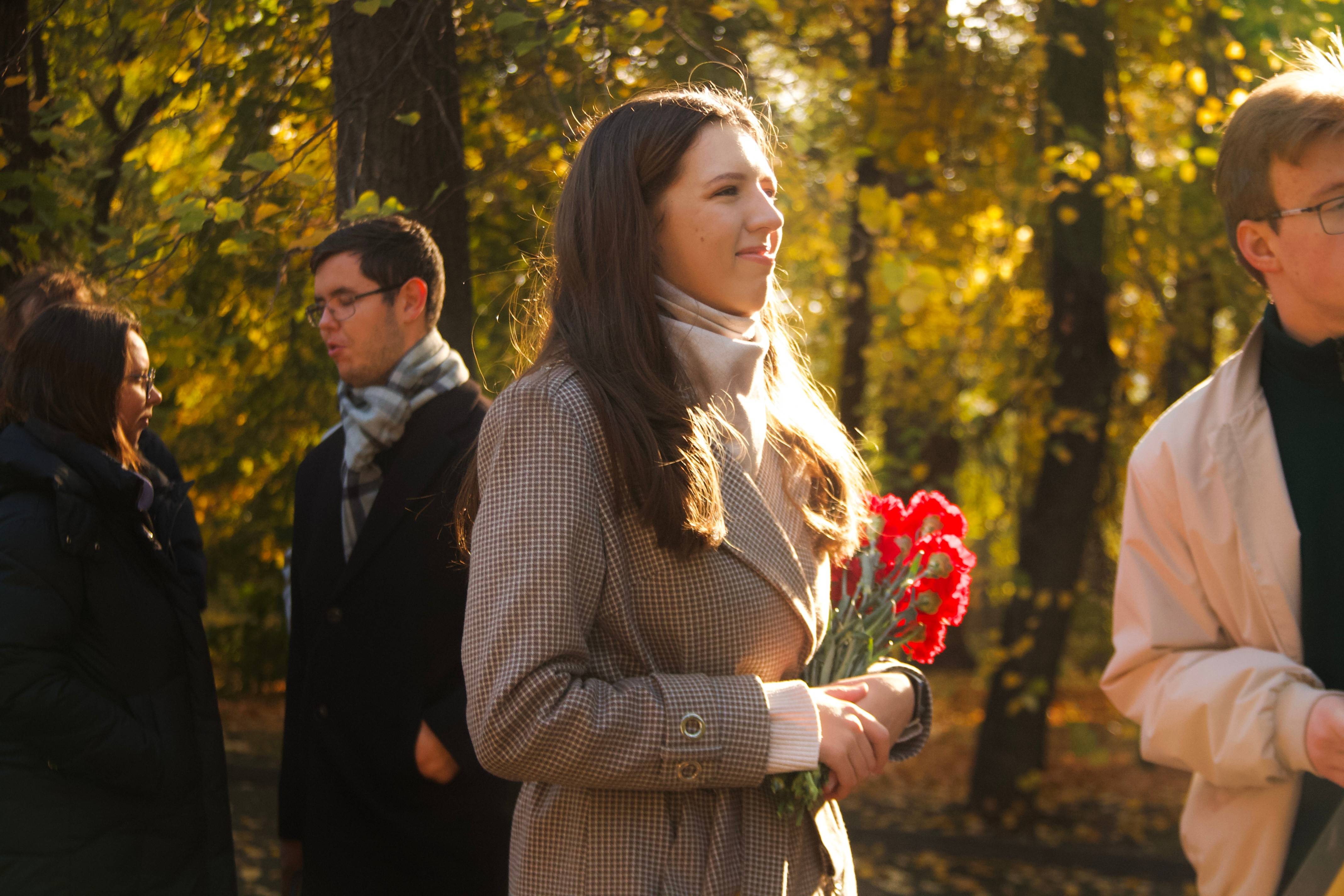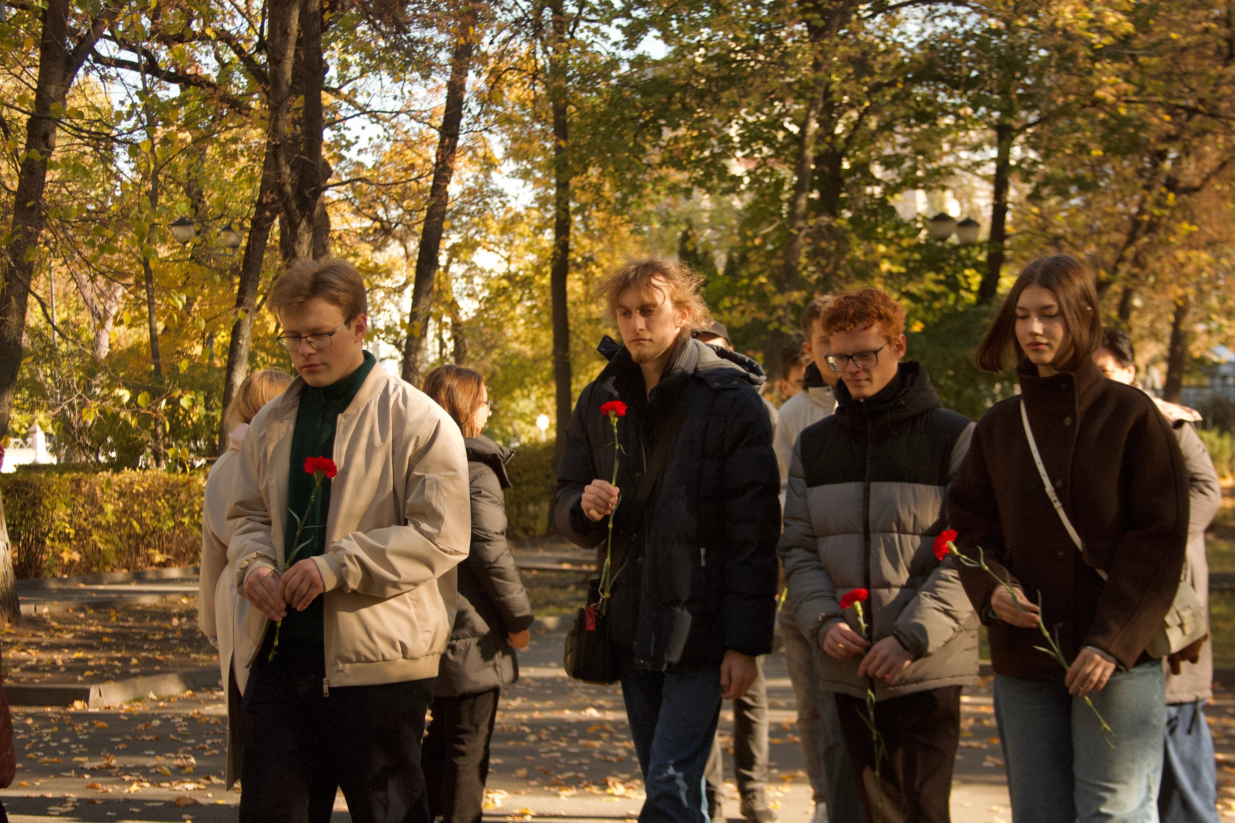 Вместе с руководителем Липецкого отделения РВИО Ниной Владимировной Фединой и студентами-историками, представителями молодежного крыла отделения, они встретились у Памятника детям, погибшим в годы Великой Отечественной войны в Верхнем парке города и возложили цветы.