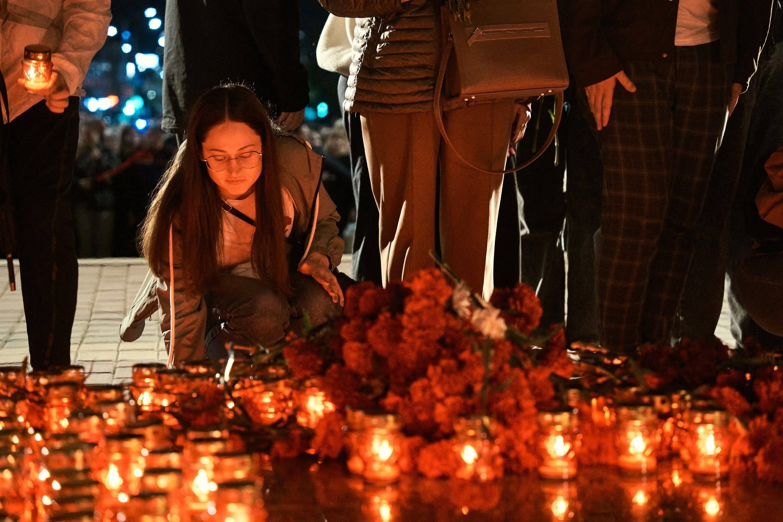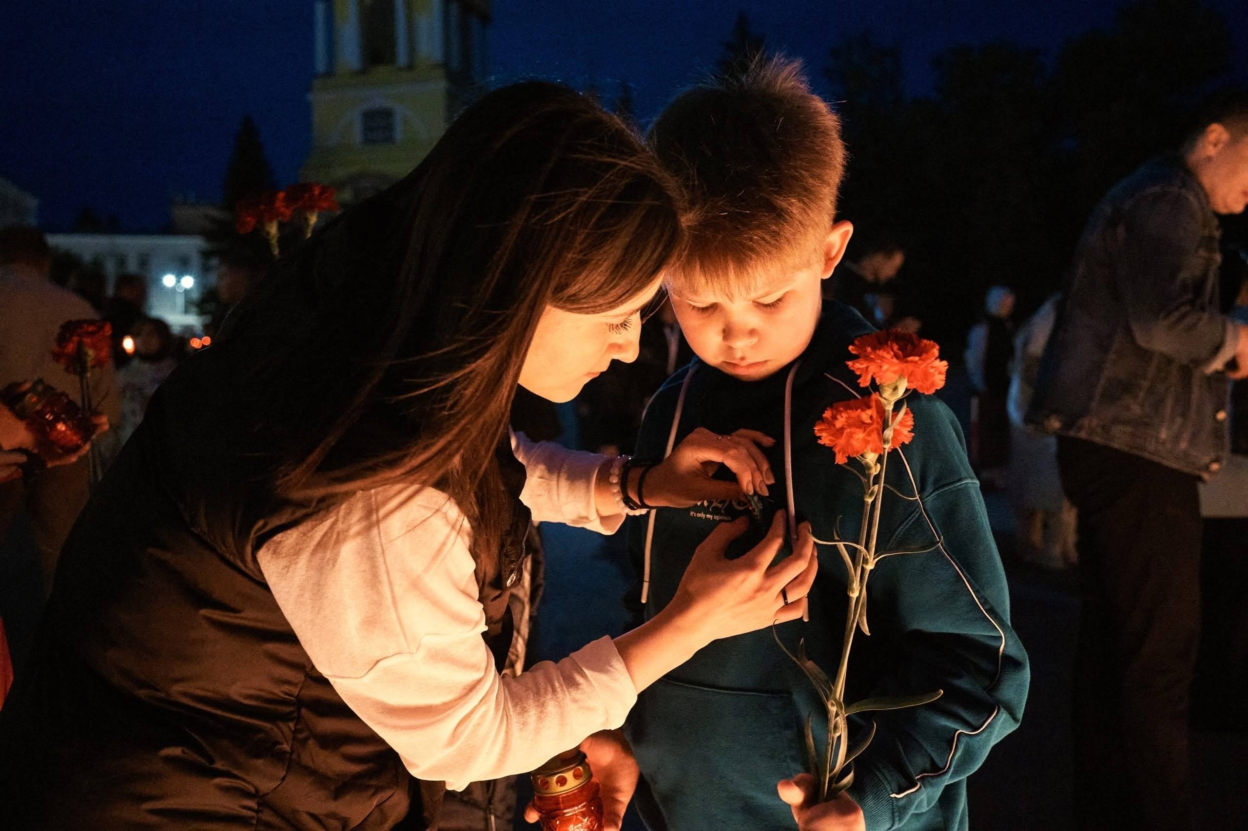 Активисты изготовили своими руками броши в виде гвоздик - символа скорби и памяти - и раздавали их всем присутствующим. Участие в акции «Свеча памяти» — это возможность сказать «Спасибо» героям и напомнить себе и окружающим о важности мира.
