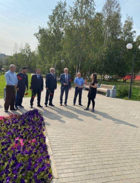 Энрик Муслимов, Герой России Загид Загидов и представитель Правительства РД В Коми Хасбула Рамазанов почтили память А. Алексеева и возложили цветы к мемориалу герою.