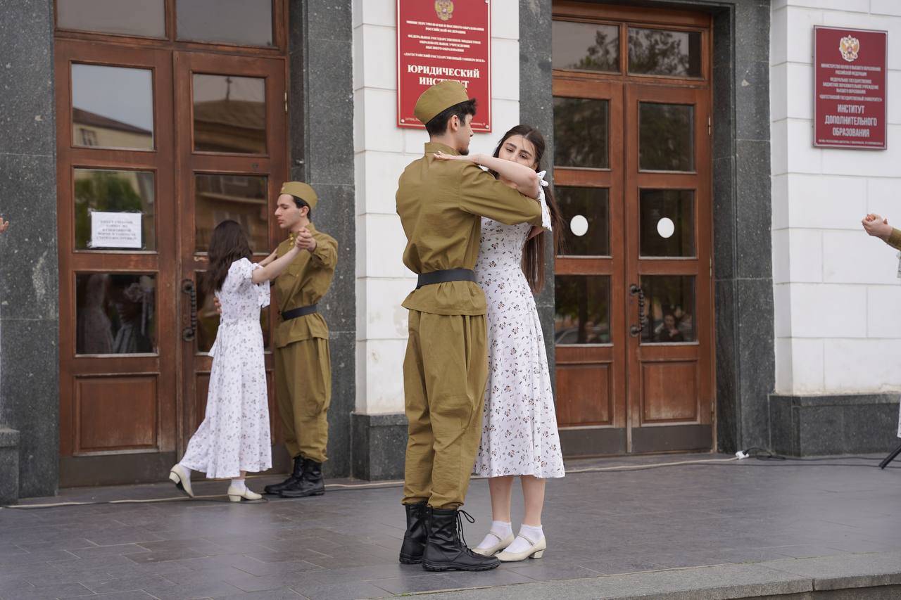 В Дагестанском государственном университете прошла акция «15 дней до Победы» в рамках которой студенты вуза исполнили песни, стихи и вальс военных лет.