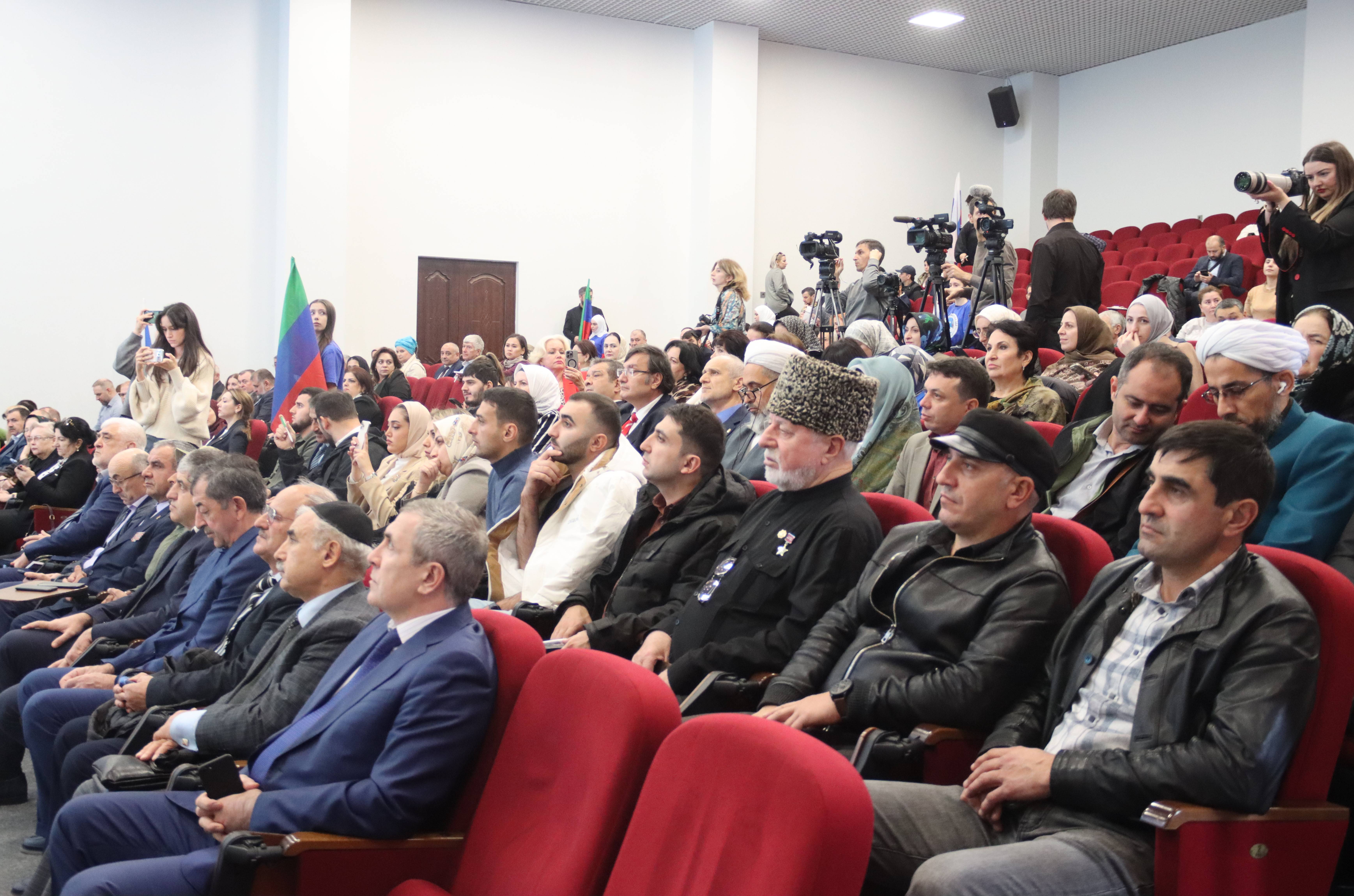 Мероприятие началось с прослушивания гимнов Российской Федерации и Республики Дагестан.