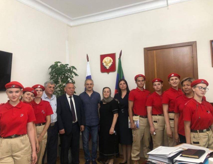 8 августа министр по национальной политике и делам религий Республики Дагестан Энрик Муслимов встретился с заместителем директора Муниципального автономного учреждения «Районный молодежный центр» Сургутского района, начальником местного отделения ВВПОД «ЮНАРМИЯ» Сургутского района Эльвирой Галиакберовой. Во встрече также приняли участие первый заместитель министра Гарун Давыдов, начальник отдела Миннаца РД Хасайбат Валиева, члены регионального отделения Всероссийского детско-юношеского военно-патриотического общественного движения «ЮНАРМИЯ» Ханты-Мансийского автономного округа – Югра.