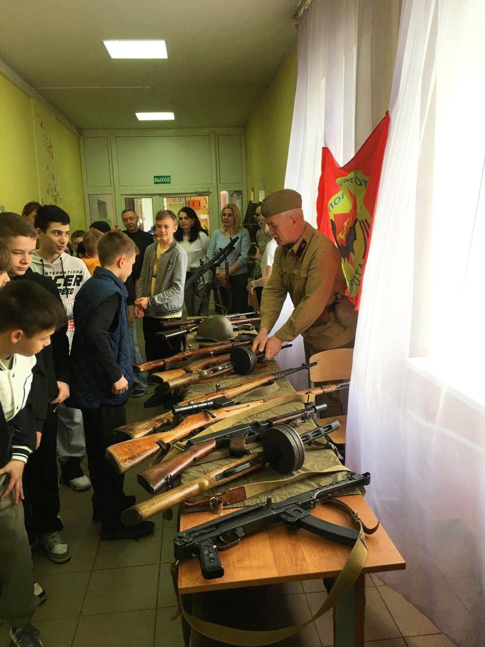 Сегодня в МБОУ СОШ №5 (г.о. Серпухов) Серпуховское отделение Российского Военно-исторического Общества Московской области в преддверии 79 годовщины Дня Победы в Великой Отечественной войне организовало выставку "Медицина и стрелковое оружие РККА".