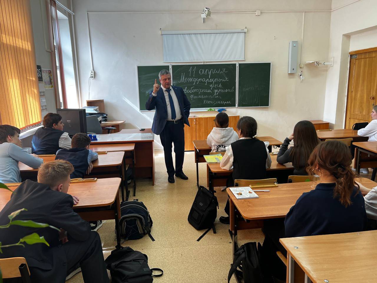 В преддверии 11 апреля — Международного дня освобождения узников фашистских концлагерей — в стенах МКОУ «Санаторная школа-интернат 5» член совета РВИО в Нижегородской области Лешков Николай Иванович провел важный урок патриотического воспитания.