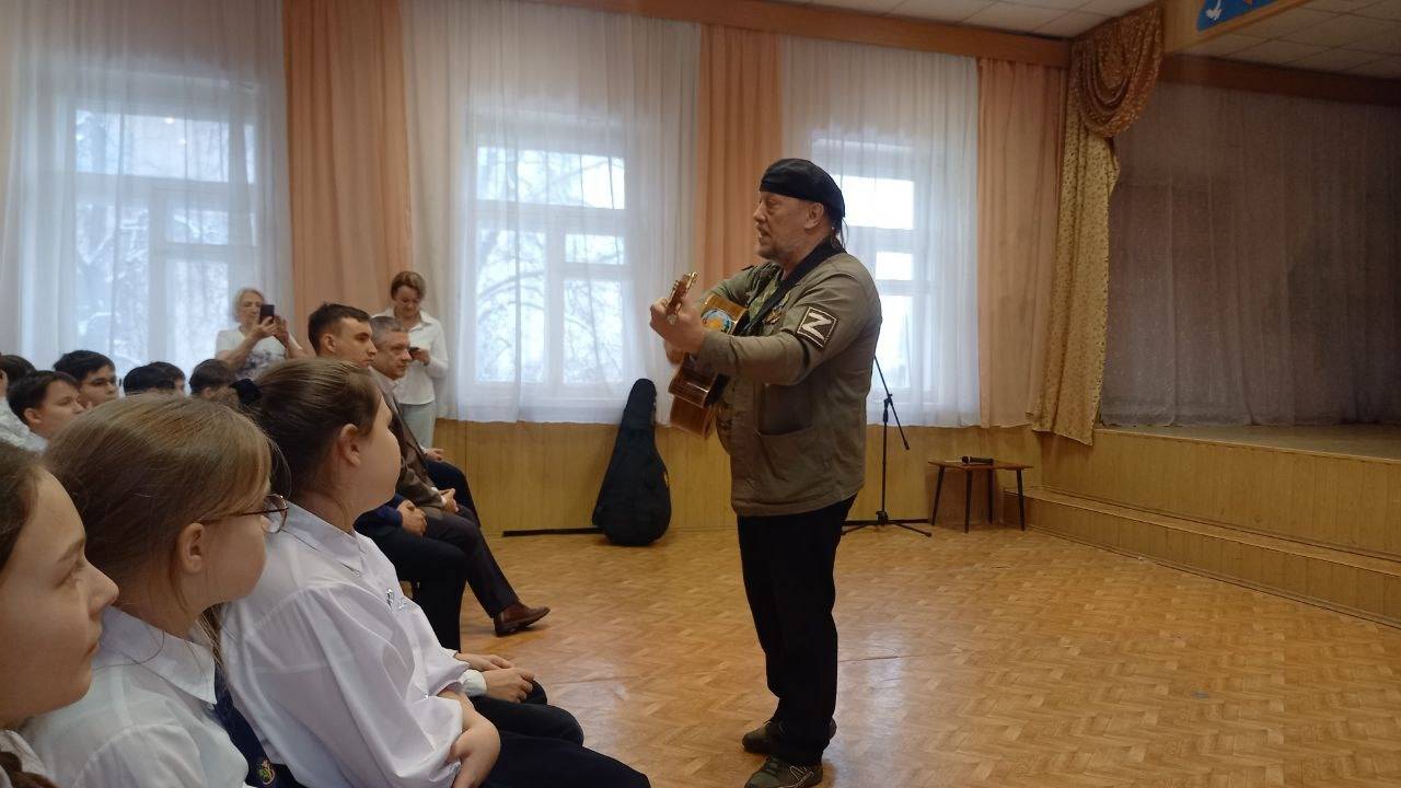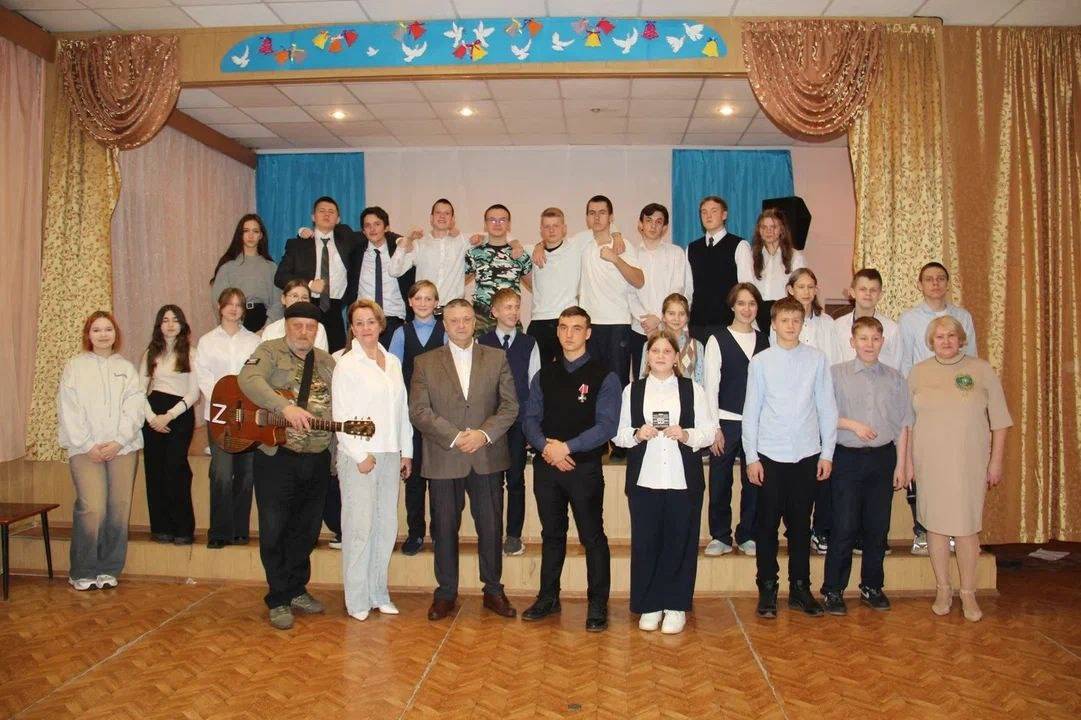 Почетными гостями мероприятия стали Павел Юдин, бард патриотической песни, давший множество концертов в зоне СВО, а также Сергей Кочетов, выпускник школы, кавалер ордена Мужества.