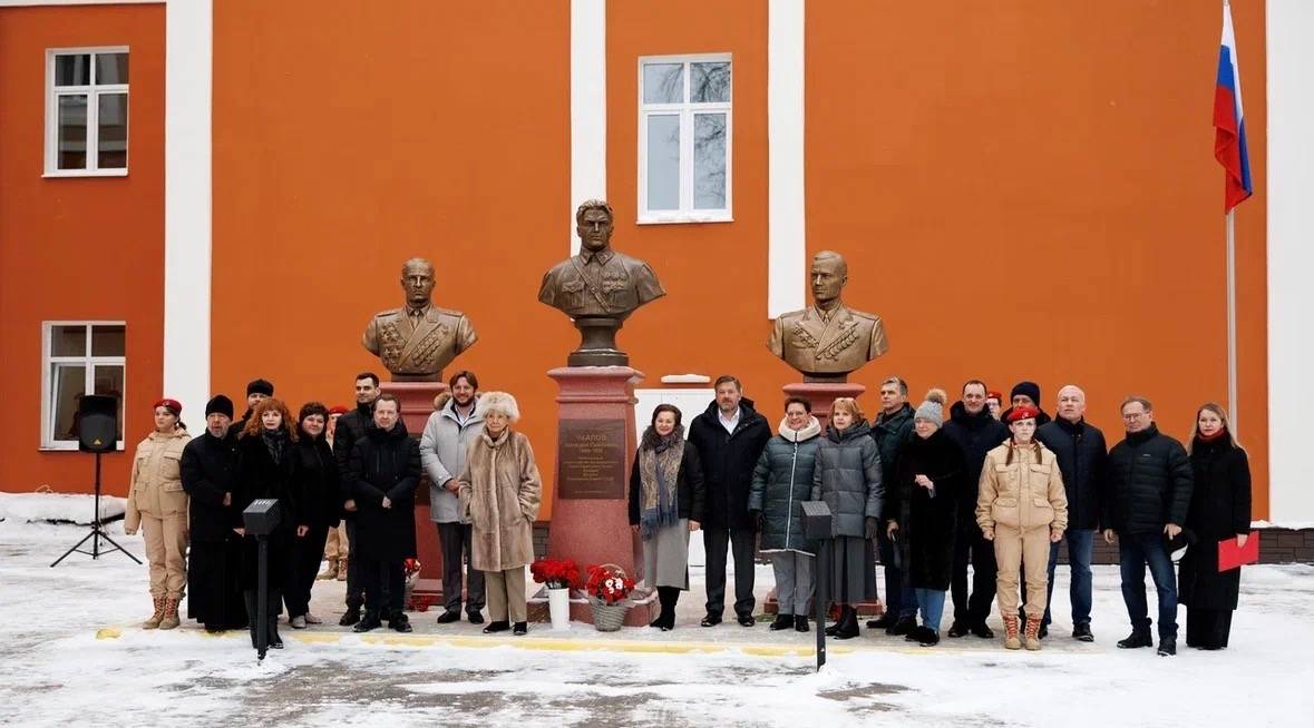 27 февраля в Чкаловске Нижегородской области состоялось открытие бюстов легендарных пилотов Георгия Филипповича Байдукова и Александра Васильевича Белякова.