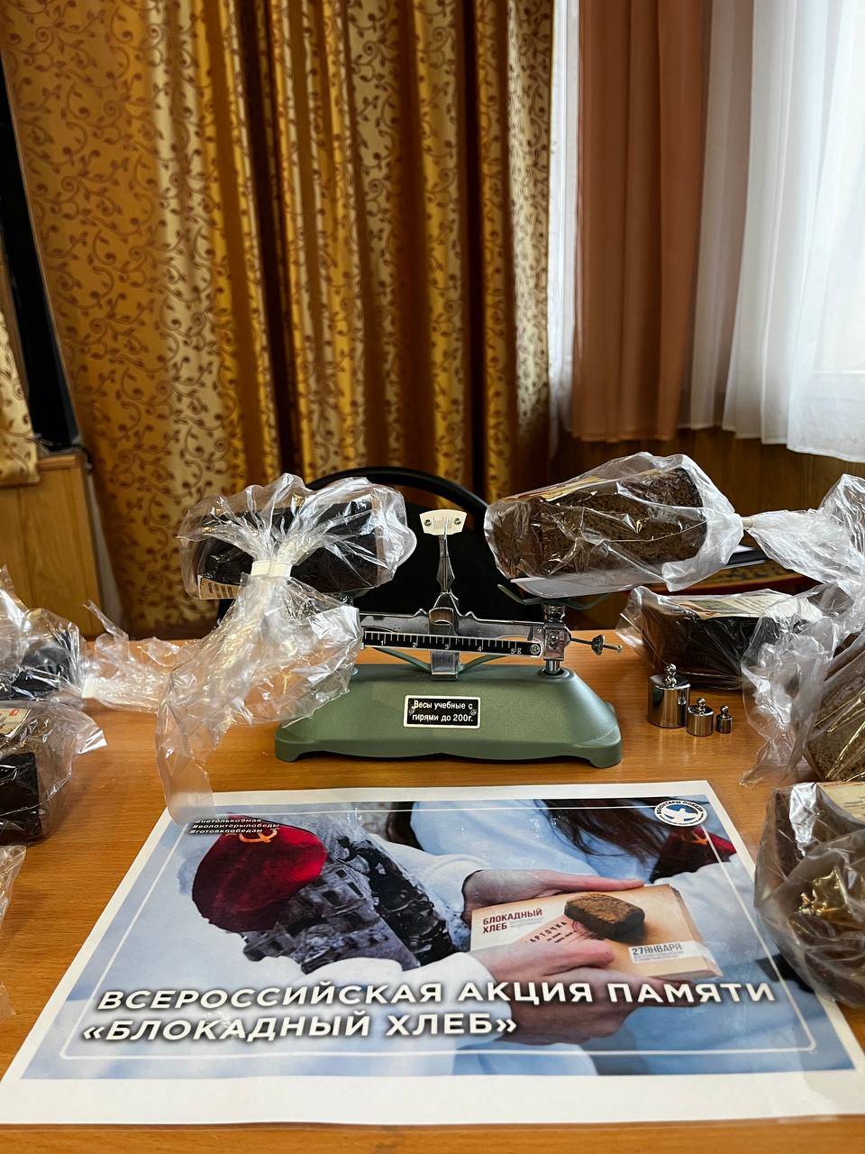 В память о людях, переживших голод и тяготы военного лихолетья в школе также прошла Всероссийская акция «Блокадный хлеб», посвящённая дню полного освобождения Ленинграда от фашистской блокады. В ходе данной акции все ребята получили 125-граммовые кусочки хлеба, вошедшего в историю как символ блокадного Ленинграда.