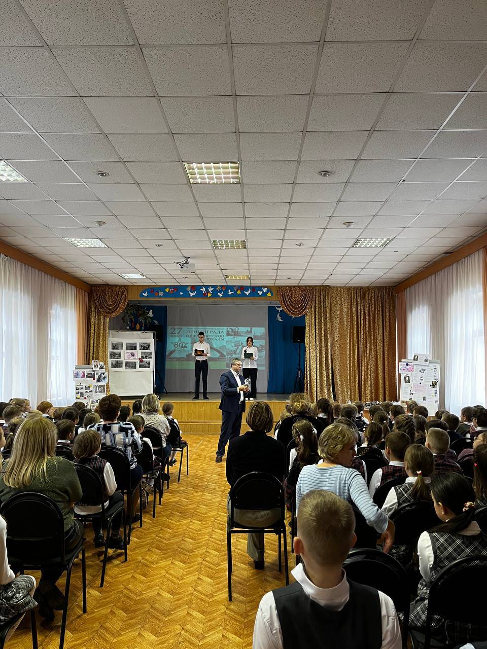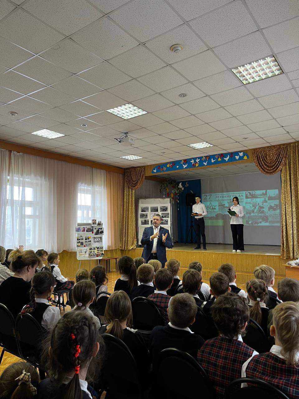 26 января в Муниципальном образовательном учреждении «Санаторная общеобразовательная школа – интернат № 5» прошла познавательная беседа с учащимися 1-4-х классов. Николай Иванович познакомил школьников с историей блокадного Ленинграда, с жизнью взрослых и детей в городе с 1941 по 1944 год. Дети были активно вовлечены в обсуждение событий блокадного Ленинграда, которые стали символами героизма и стойкости защитников города и его жителей.