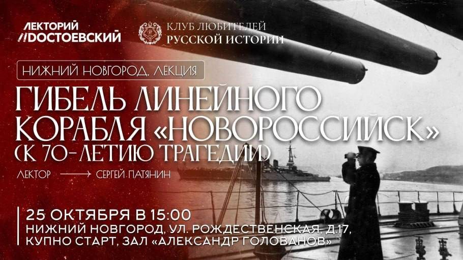 25 октября Клуб любителей русской истории в Нижнем Новгороде организовал лекцию «Гибель линейного корабля «Новороссийск» (к 70-летию трагедии)».