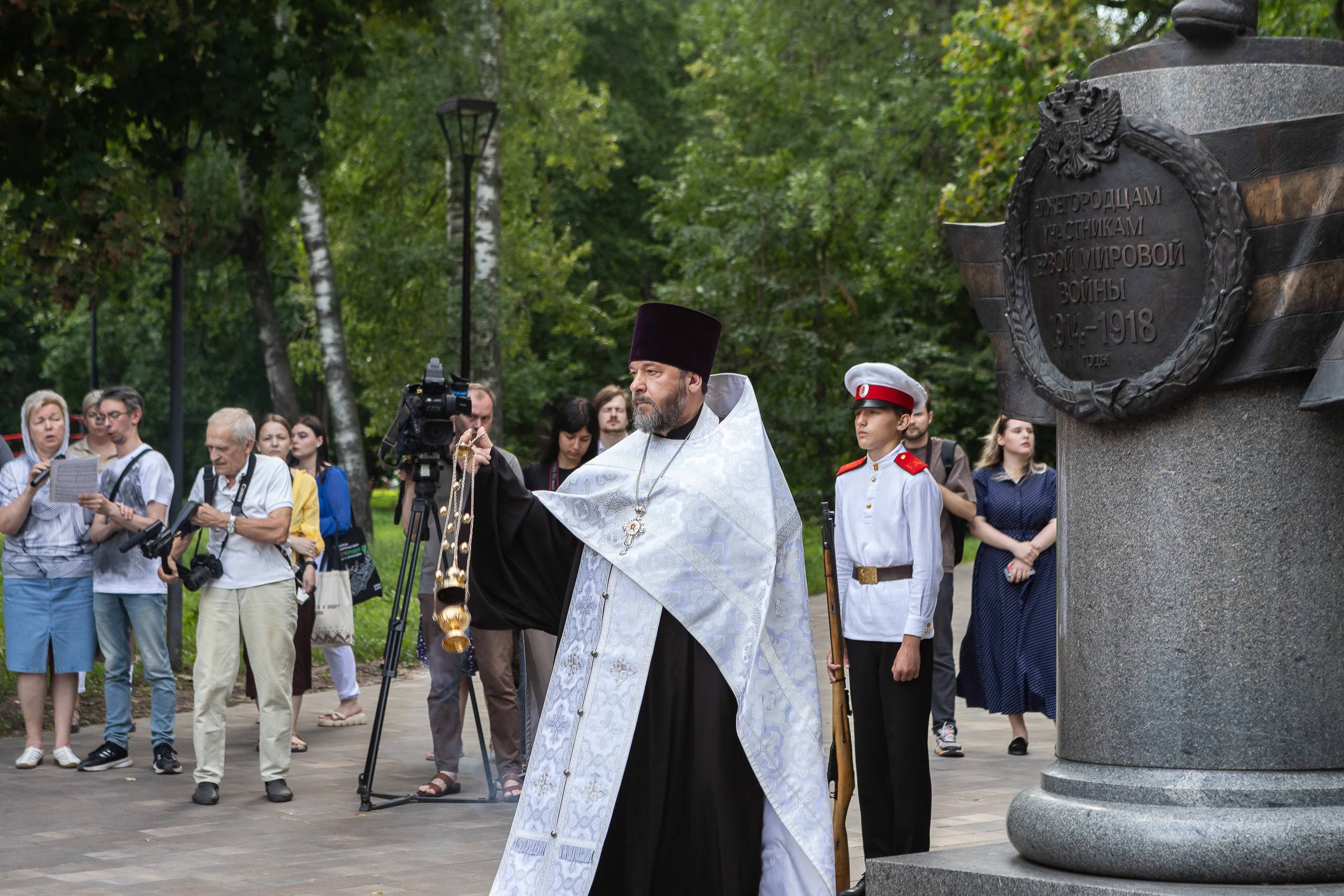 1 августа в парке им. И.П. Кулибина в Нижнем Новгороде состоялась памятная панихида по нижегородским воинам, отдавшим свои жизни за Родину в годы Первой мировой войны. Участниками мероприятия стали представители Нижегородского отделения Российского Дворянского собрания, Регионального отделения РВИО в Нижегородской области, активная молодёжь и жители города, неравнодушные к истории.