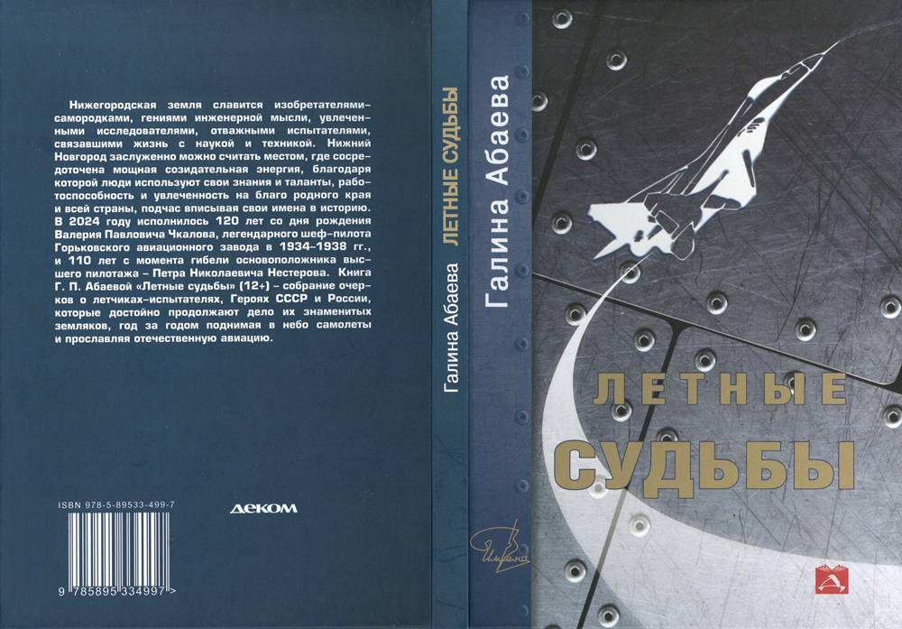 Книга «Летные судьбы» включает очерки о летчиках-испытателях завода, Героях СССР и России, которые достойно продолжают дело своих знаменитых предков, год за годом поднимая в небо самолеты и прославляя отечественную авиацию. 42 года автор - Галина Павловна Абаева - преданно служила музейной деятельности, их них 22 года в музее авиационного завода, 12 лет трудилась директором музея. Интервью с Леонидом Миненко, Владимиром Гордиенко, Владимиром Рахмановым, Александром Коноваловым и многими другими вошли в золотой фонд нижегородской публицистики.