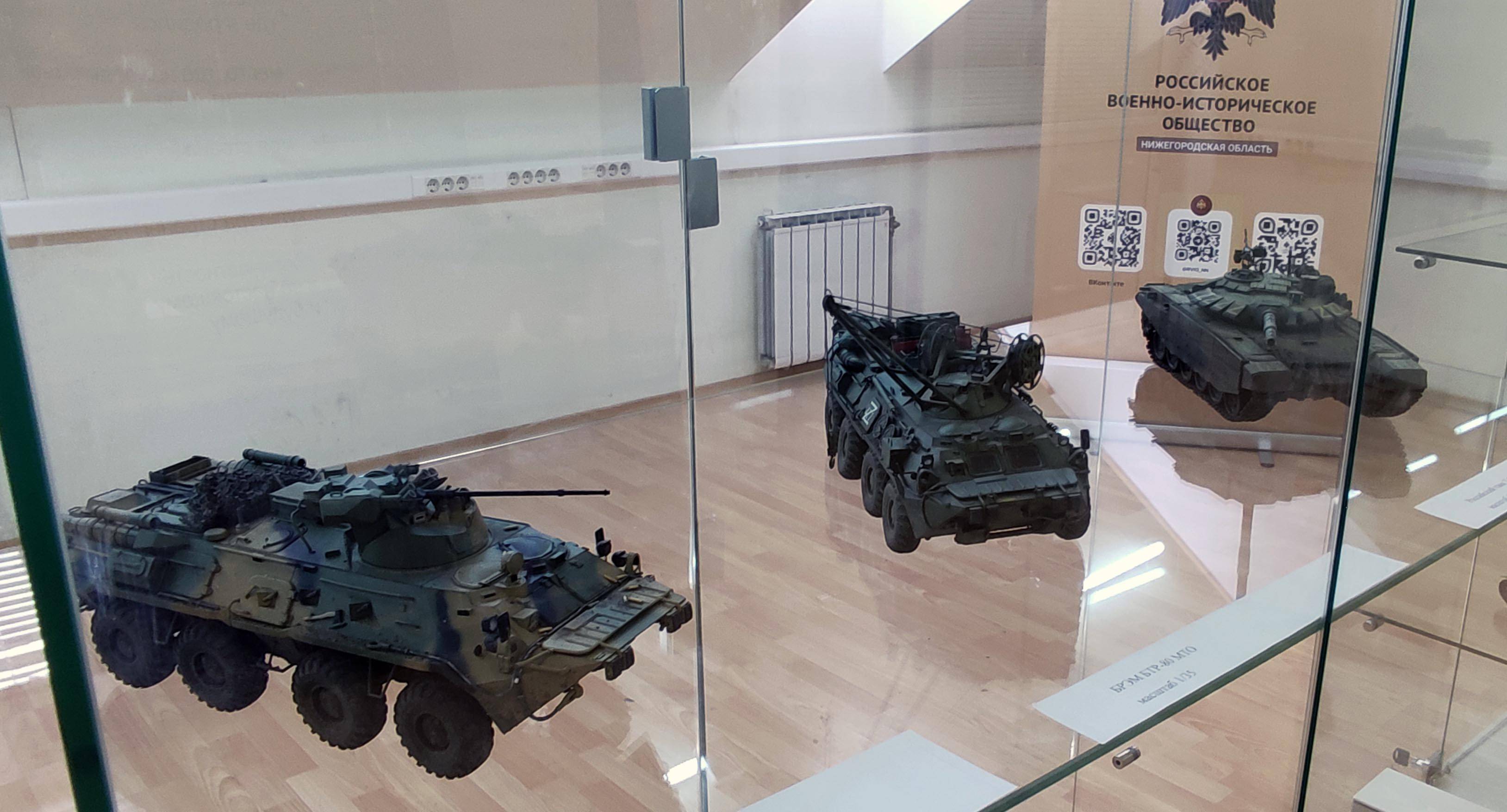 На выставке представлены 38 моделей боевой техники в масштабах 1/35, 1/48, 1/72, 1/350. Например, диорама «Жаркая осень 1944 года» (САУ ИСУ-122С), модель К-551 «Владимир Мономах», российской атомной подводной лодки стратегического назначения 4-го поколения.