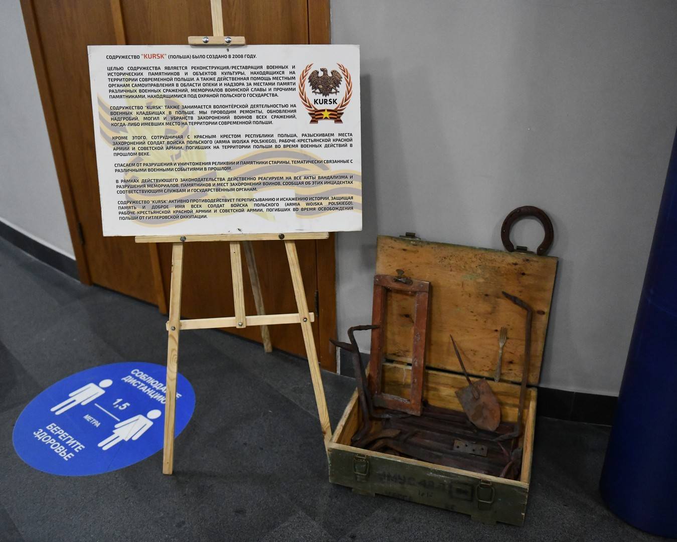 В дополнение к лекции была проведена презентация передвижной фотовыставки «Здравствуй солдат, вчерашний скиталец», посвященной памяти участников Войска Польского. На выставке были представлены уникальные экспонаты, имеющие связь с событиями тех лет. Например, дверь из штаба дивизии имени Тадеуша Костюшко под Рязанью - единственная сохранившаяся его часть после пожара. Ежи Тыц и его товарищи планируют восстановить штаб в ближайшем будущем, как важное историческое место.