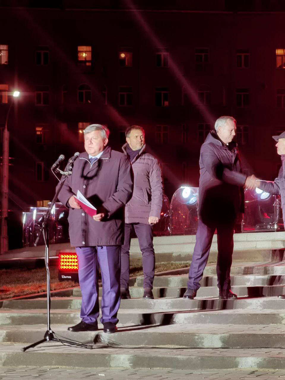 Николай Овсиенко поздравил новосибирцев с открытием стелы, увековечивающей героический подвиг жителей города и передал приветствие от Помощника Президента РФ, Председателя РВИО Владимира Мединского: