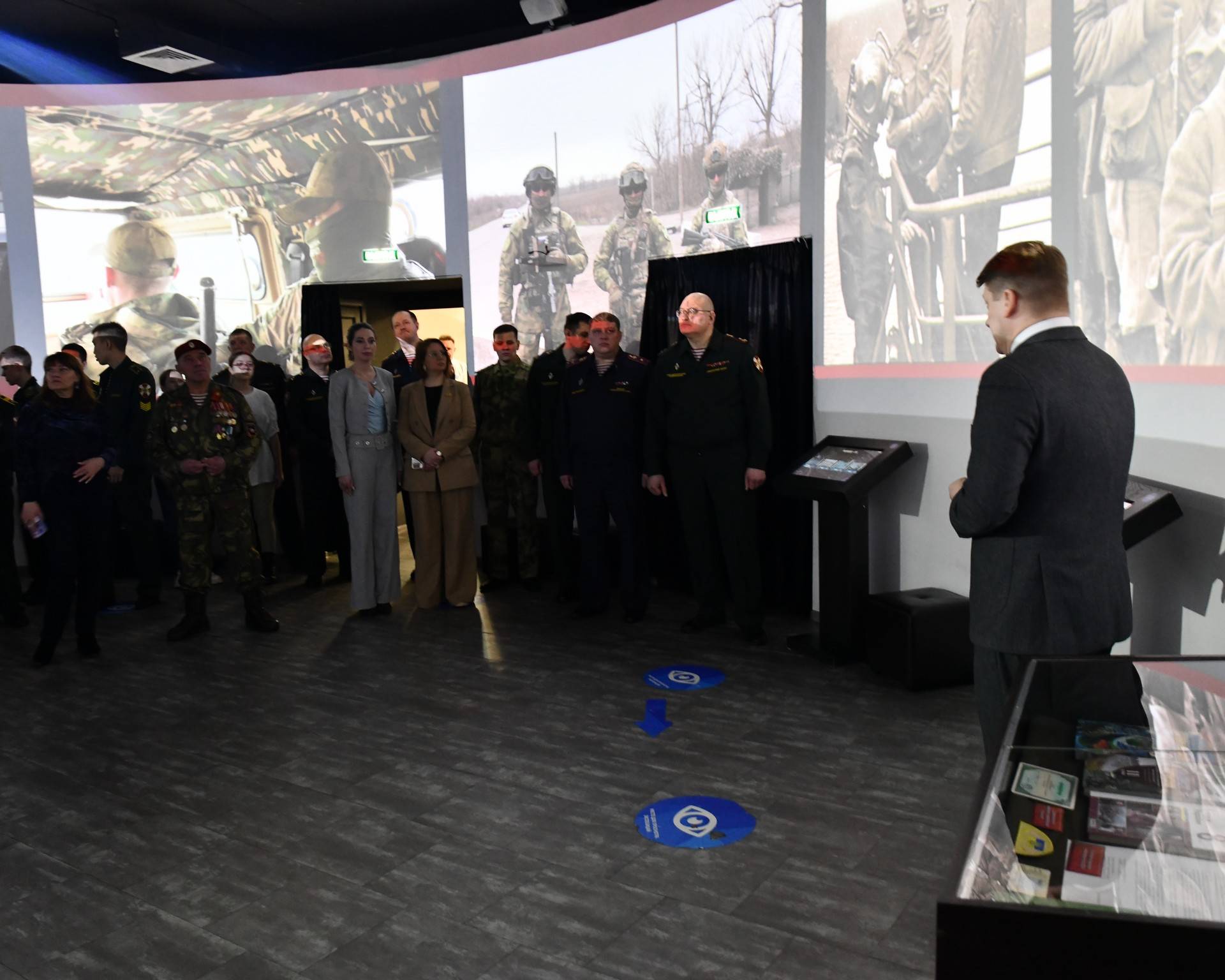 Заместитель командующего Сибирским ордена Жукова округом войск национальной гвардии Российской Федерации по военно-политической работе полковник Максим Гуляев, обратился к гостям: «Сегодня мы проводим очередное знаковое мероприятие в преддверии нашего профессионального праздника. Эта выставка будет полезна не только тем, кто определяет свой профессиональный путь, но и всем, кто интересуется историей нашего государства и войск национальной гвардии. Мы рады поделиться накопленными знаниями, уникальными архивными материалами и свидетельствами эпохи, которые помогут глубже понять роль Росгвардии в обеспечении безопасности и стабильности России».
