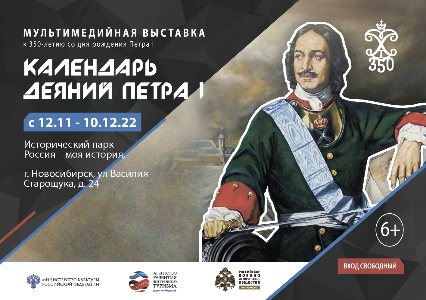 Мультимедийная передвижная выставка «Календарь деяний Петра I», посвященная 350-летнему юбилею со дня рождения первого российского императора, откроется в Новосибирске 12 ноября. Экспозиция выставки выполнена в цветах России и рассказывает о личности Петра – новаторе и лидере, который изменил ход истории.