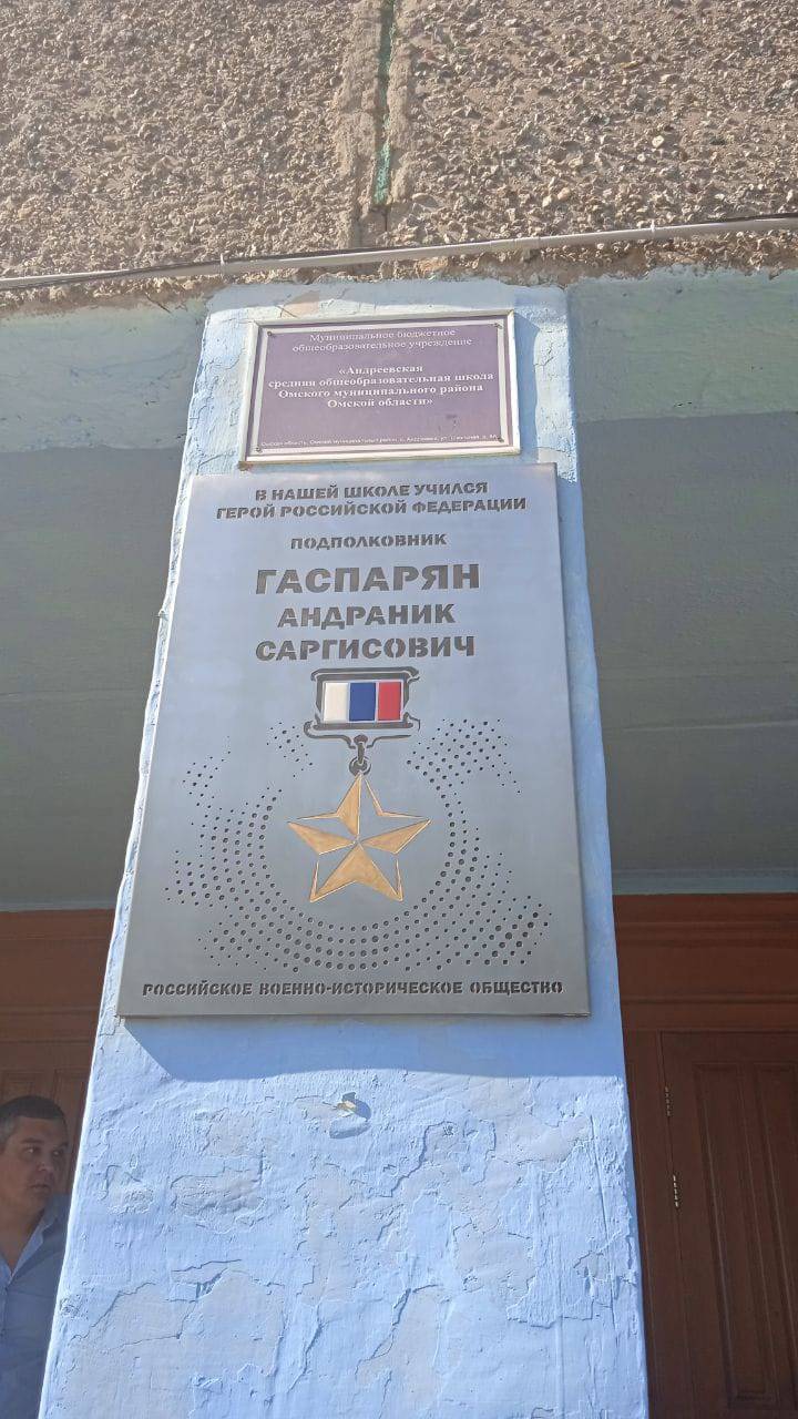 По инициативе Российского военно-исторического общества на здании Андреевской школы Омского района Омской области установлена памятная доска ГЕрою России.