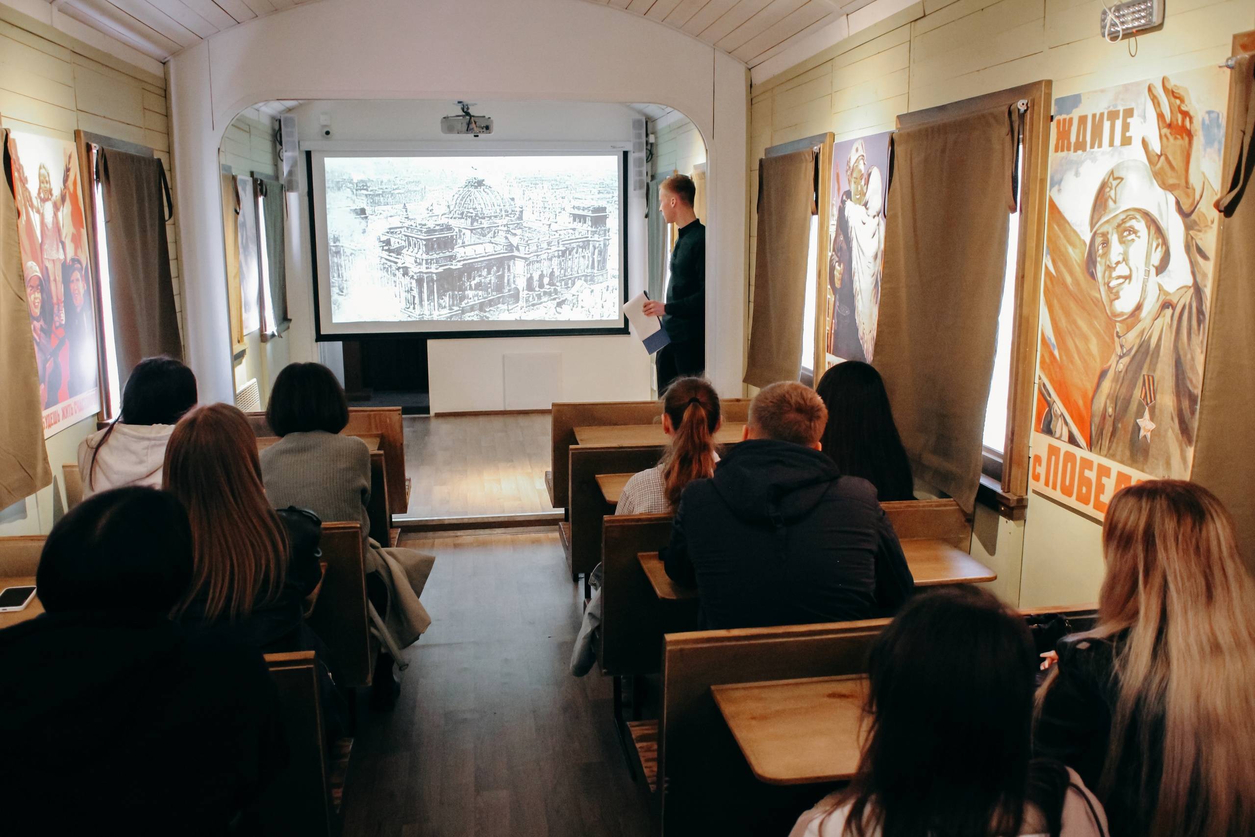 16 апреля в киновагоне выставочного комплекса «Салют, Победа!» при поддержке регионального отделения Российского военно-исторического общества в Оренбургской области состоялся урок памяти «Падение Третьего Рейха», участниками которого стали студенты-юристы Оренбургского института филиала МГЮА им. Кутафина.