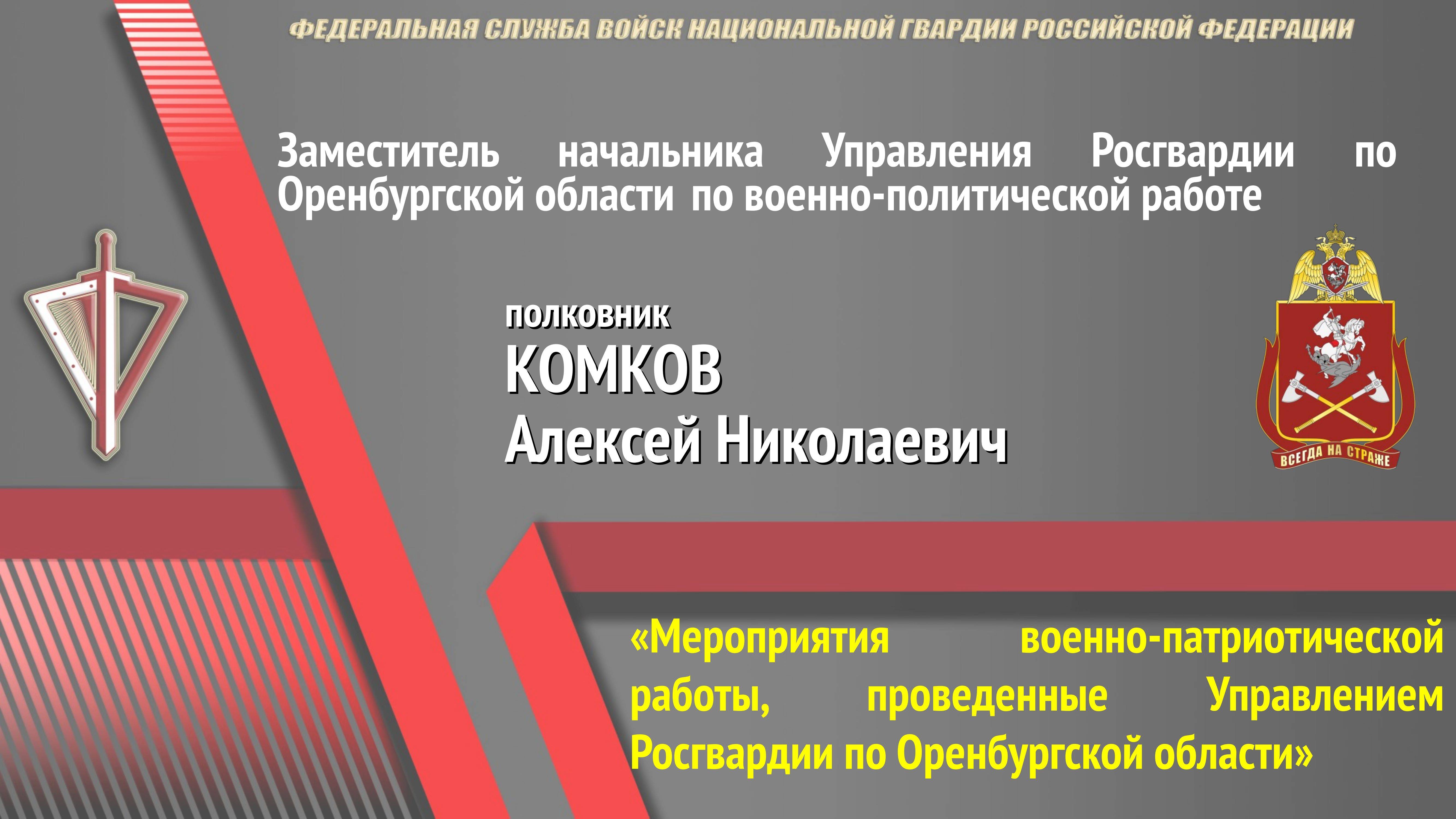 Представляем отчет заместителя начальника Управления Росгвардии по Оренбургской области по военно-политической работе А.Н. Комкова о деятельности в данном направлении в 2022 году.