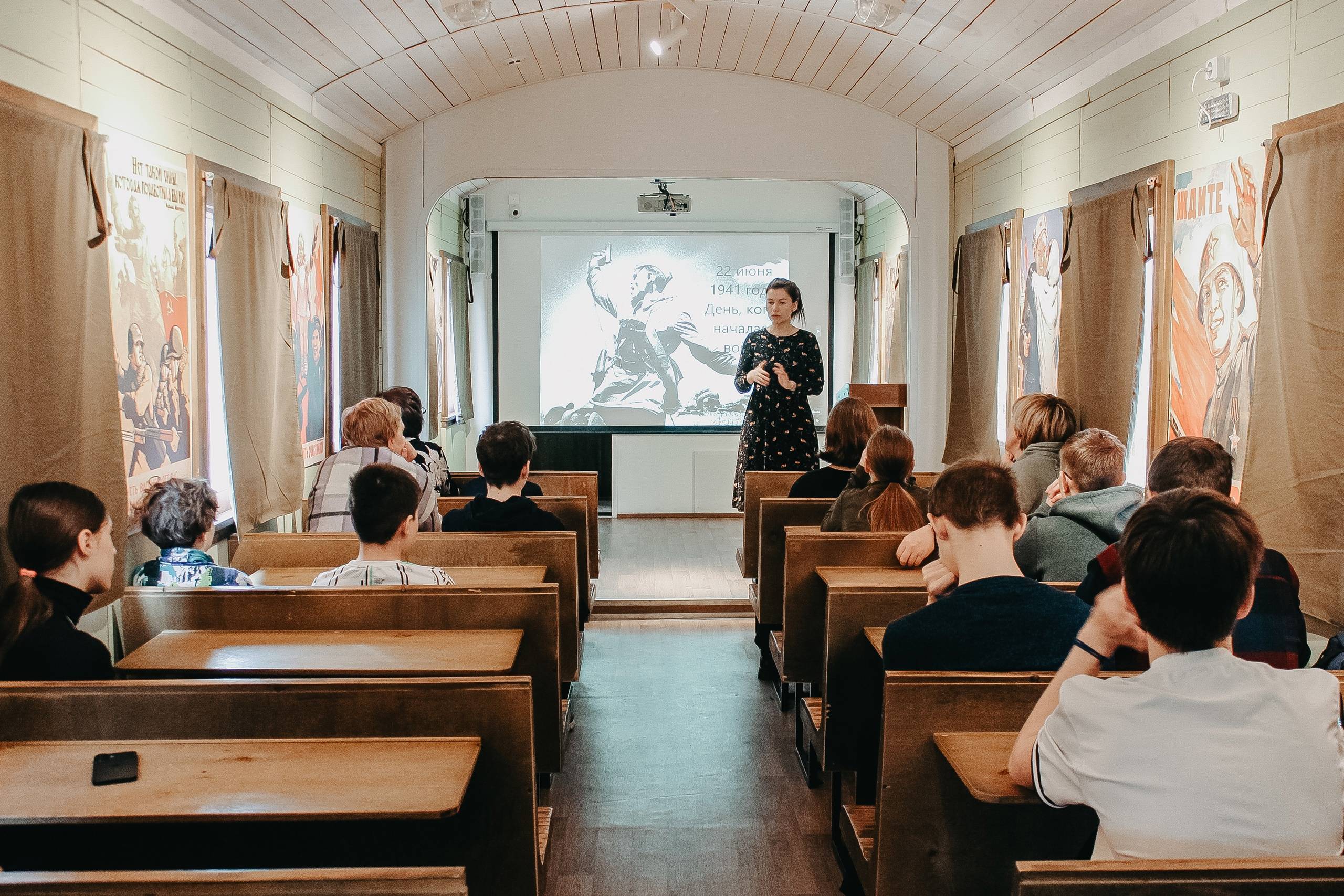 В киновагоне выставочного комплекса «Салют, Победа!» Российское военно-историческое общество в Оренбургской области при поддержке Оренбургского губернаторского музея провело лекцию из цикла историко-просветительских уроков, приуроченных к 80-летию Победы в Великой Отечественной войне 1941–1945 гг.
