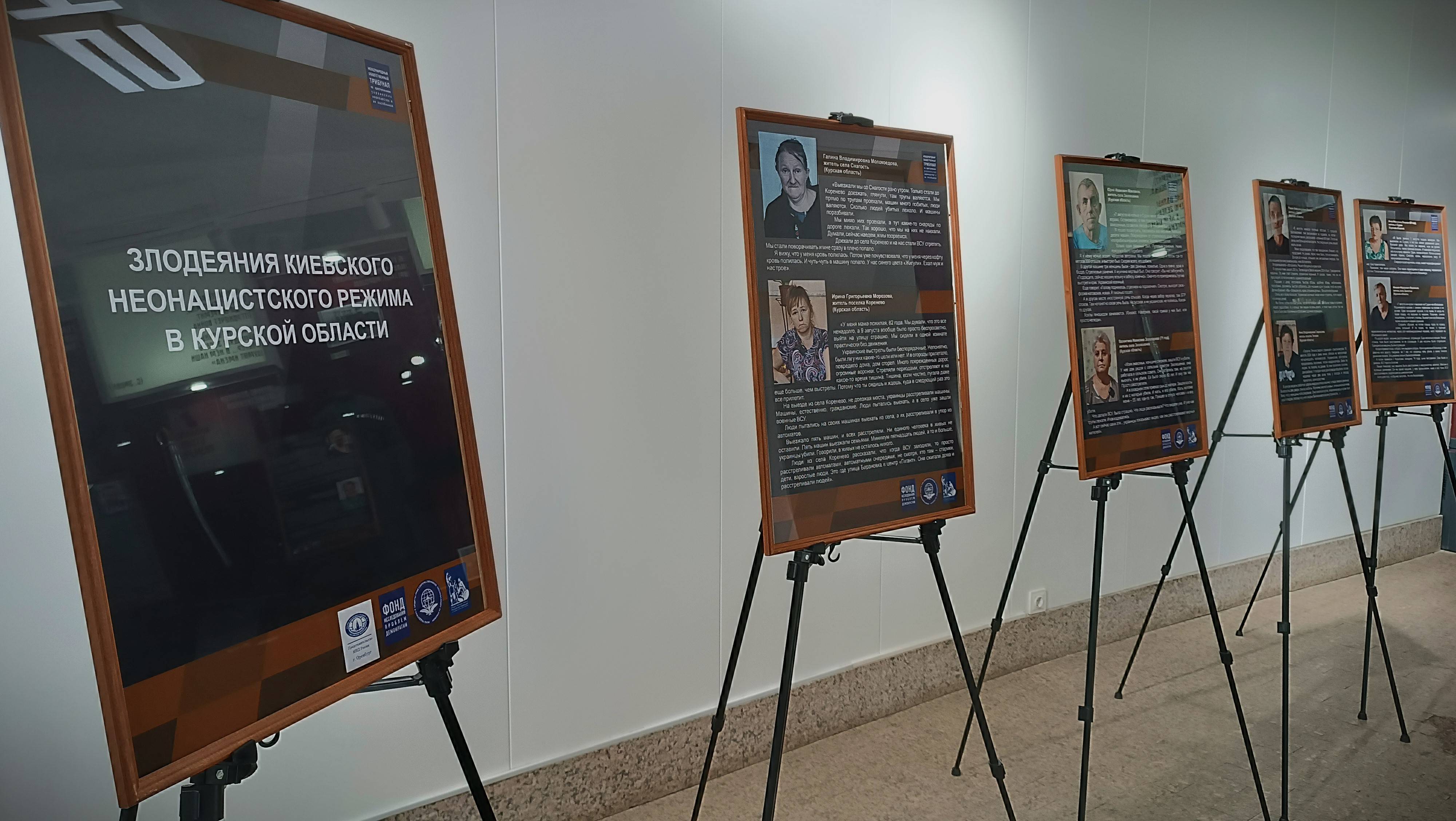 Каждый планшет выставки представляет собой историю жителей Курской области, которые пытались найти убежище в безопасных районах, но были атакованы.