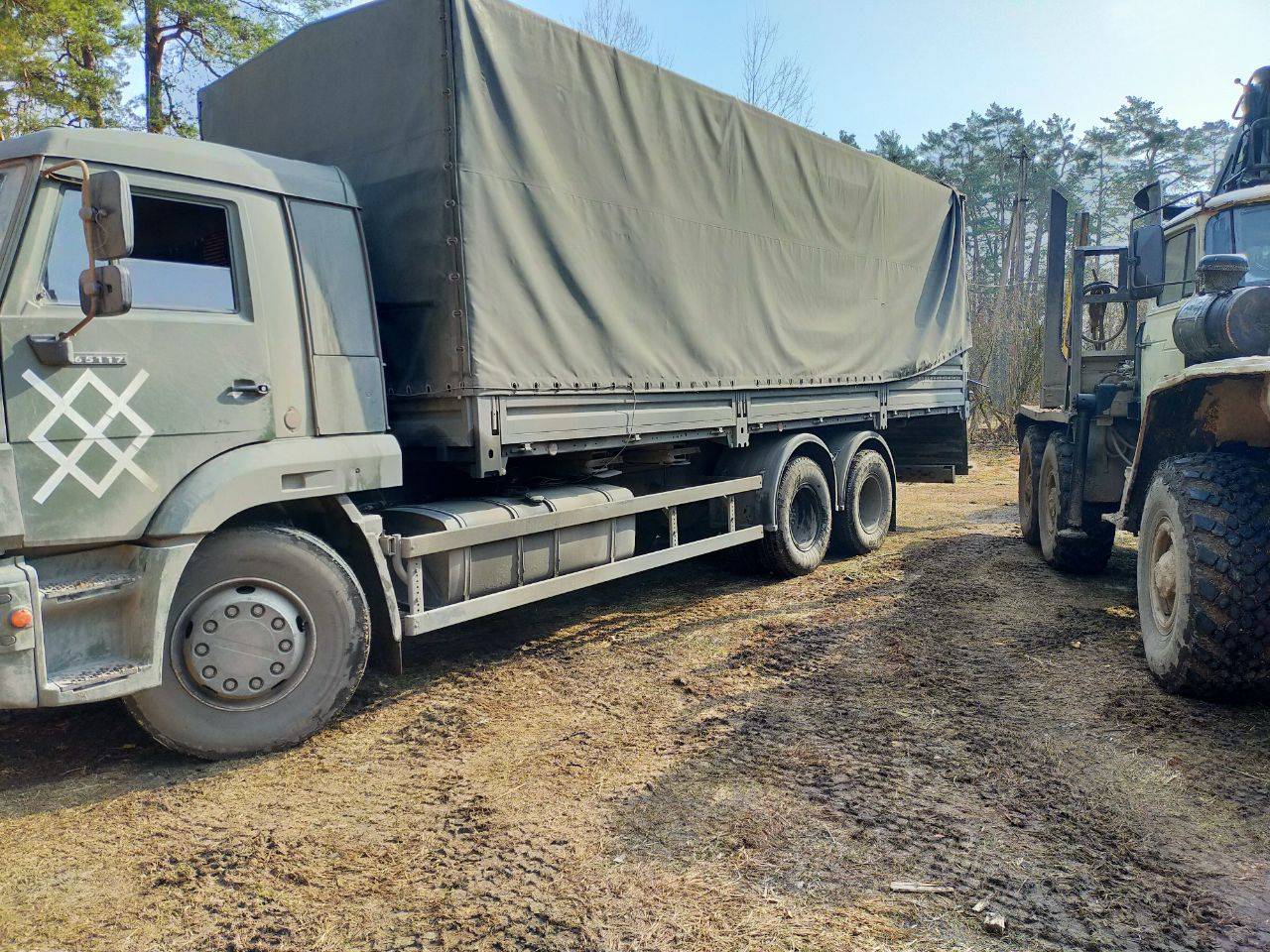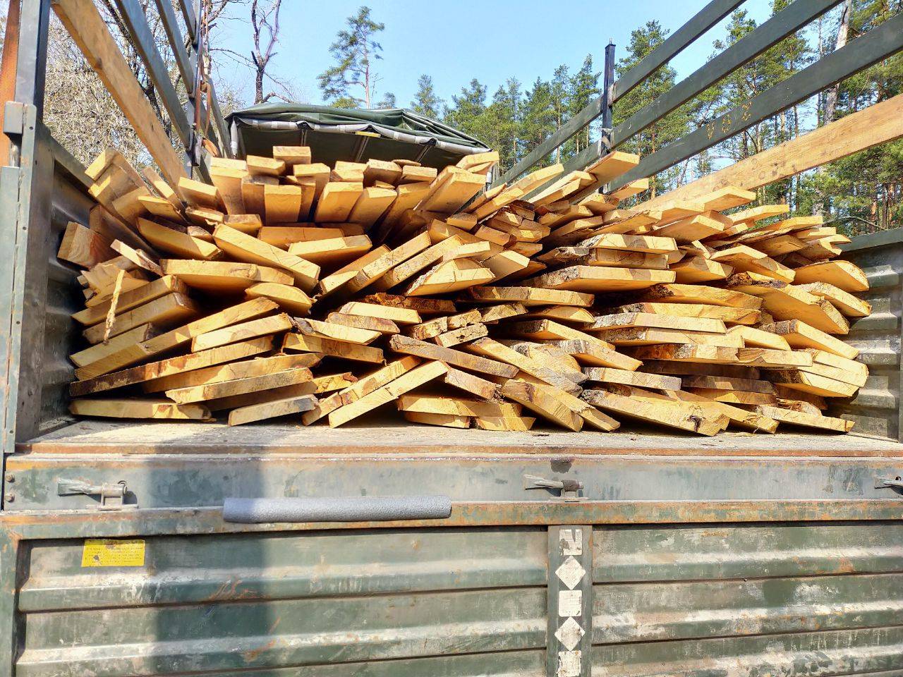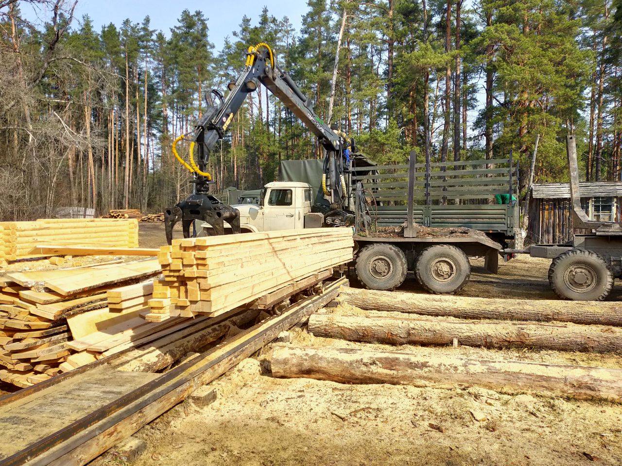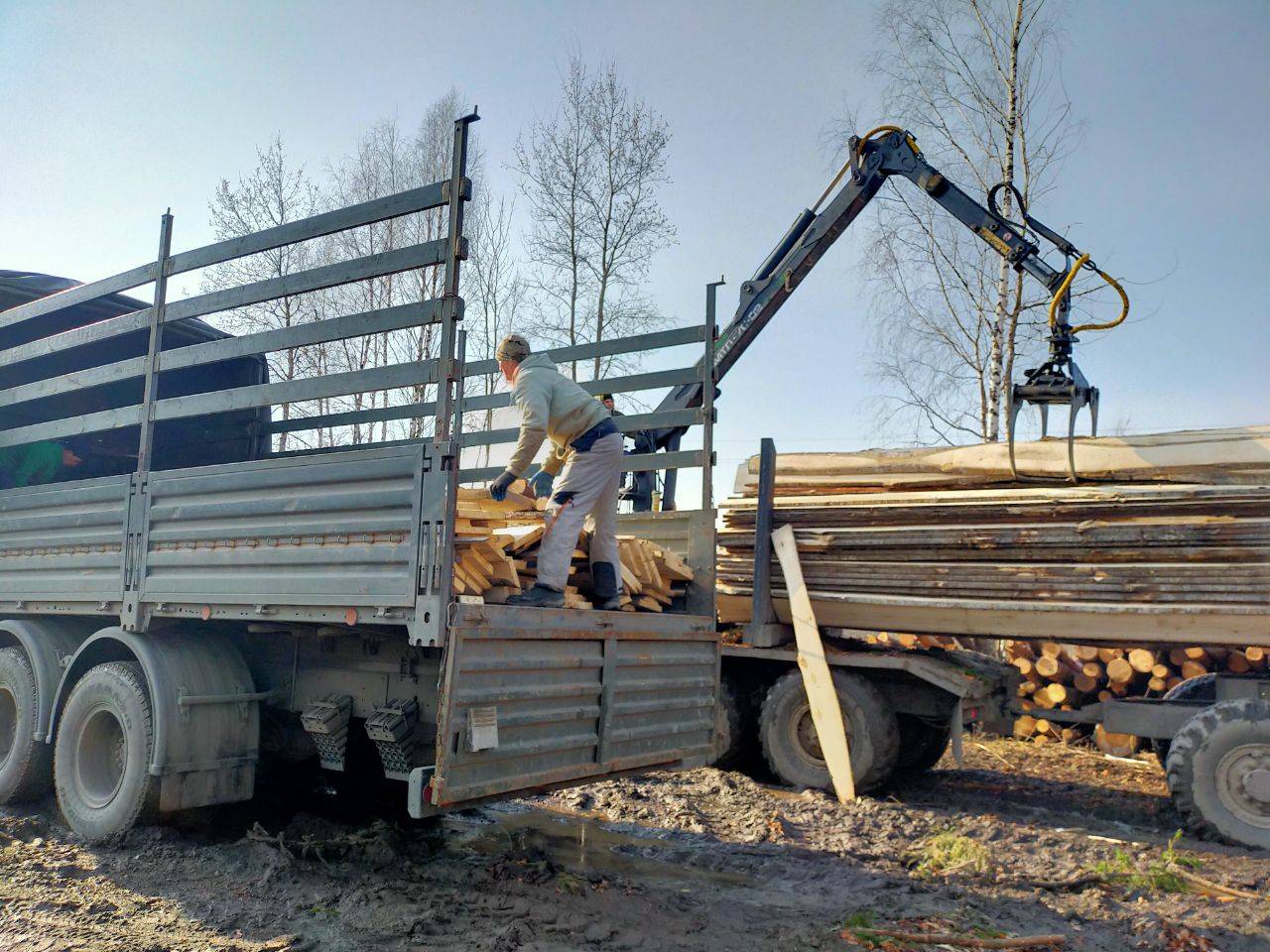 Загрузка пиломатериала производилась на пилораме в Калужской области. Для загрузки была приготовлена доска толщиной 40 мм, а также тес толщиной 2,5 мм. Его заранее распилили на 6 метровую длину. После этого, когда военные машины прибыли, доска и тес были загружены манипулятором в кузова автомобилей.