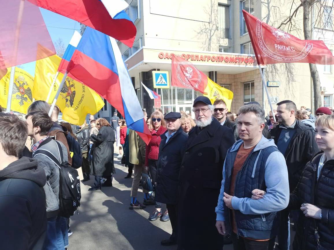 - Коллектив нашего института, активисты Российского военно-исторического общества традиционно принимают участие в первомайском митинге. Лозунг "Мир. Труд. Май" каждому знаком с детства. Праздник 1 мая объединяет людей разных поколений и профессий. Эта дата олицетворяет богатый исторический путь нашей Родины. Это праздник весны и единства тех, кто знает цену настоящему труду, - отметил и.о. директора Среднерусского института управления – филиала РАНХИГС, председатель регионального отделения РВИО в Орловской области Павел Меркулов.