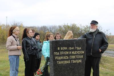 15-го октября участники проекта "Школа краеведения и фотографии "Кадры истории Орловского края" посетили "Мемориальный комплекс танкистам-первогвардейцам", памятник "Начало битвы за Москву", а также место гибели генерал-майора Л.Н. Гуртьева.