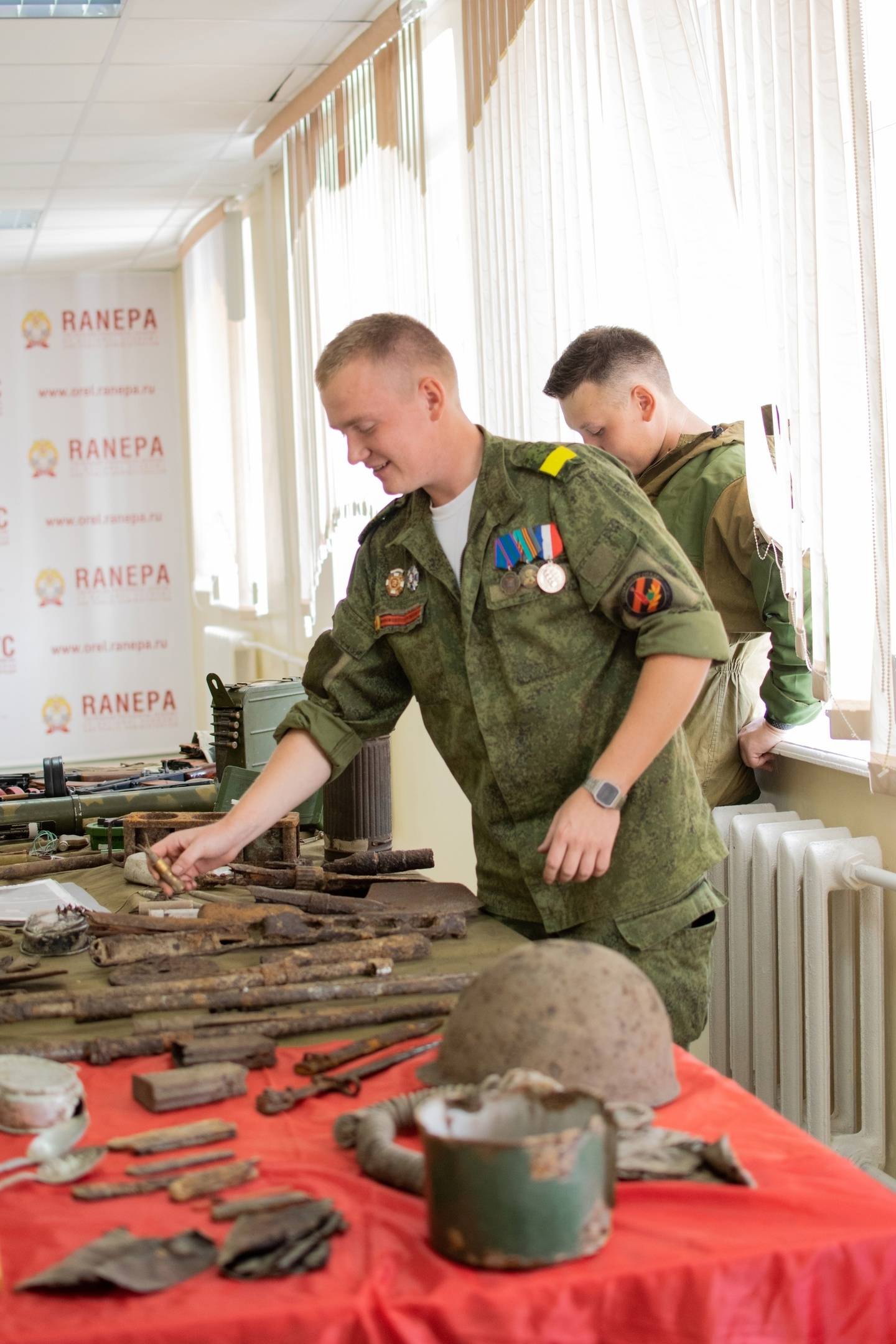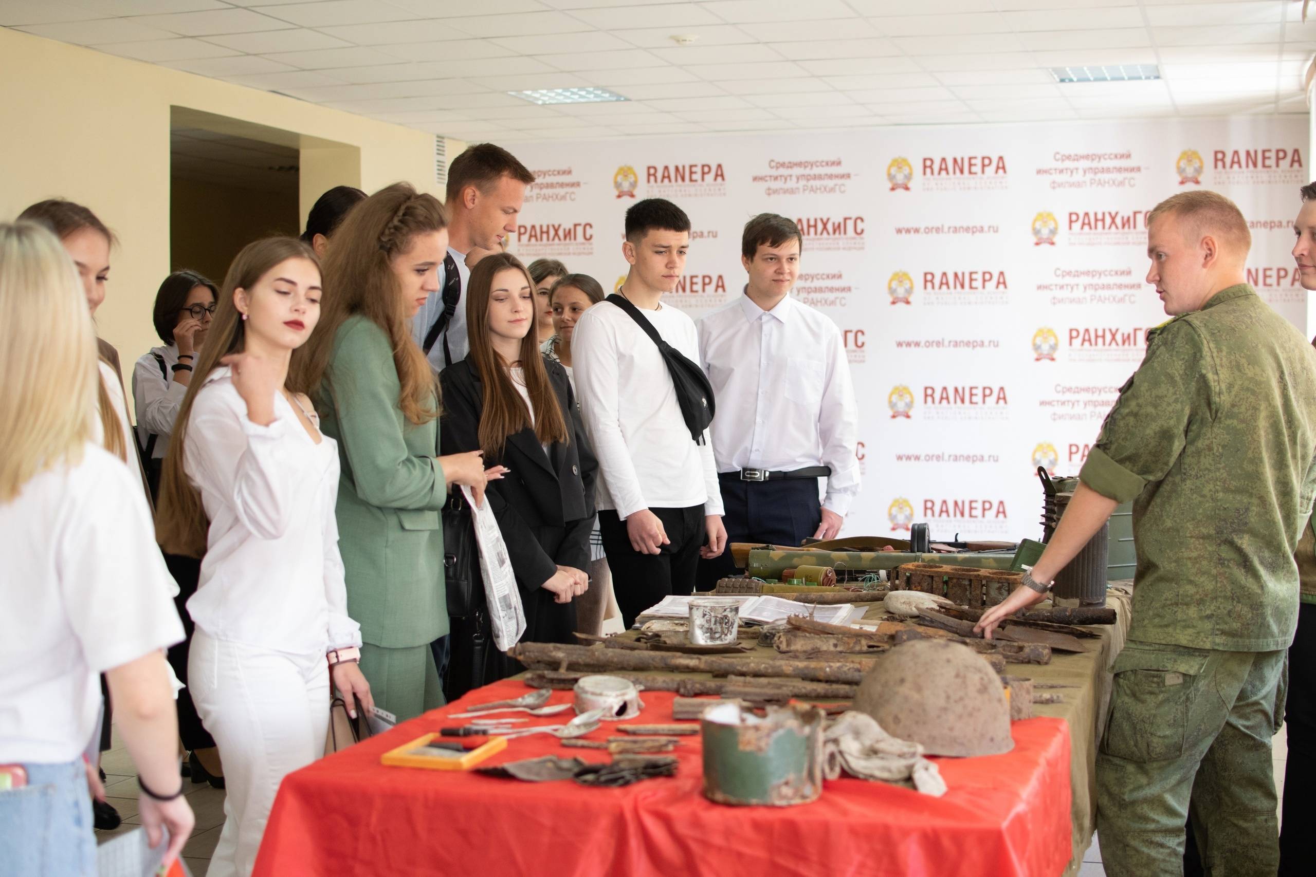 Бойцы Поискового отряда «Безымянный солдат» 1 сентября, в День знаний, представили для первокурсников Среднерусского института управления - филиала РАНХиГС уникальную музейную экспозицию поисковых находок, обнаруженных и поднятых вместе с солдатами Красной Армии в ходе проведения разведывательных выездов и Вахт Памяти во время работы отряда на территории Орловской области.
