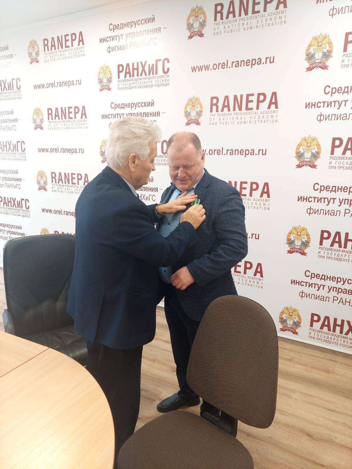 Награду вручил председатель областного Совета ветеранов (пенсионеров) войны, труда, Вооружённых Сил и правоохранительных органов, заместитель председателя консультативного Совета ветеранов при Орловском областном Совете народных депутатов Николай Максимович Кутузов.
