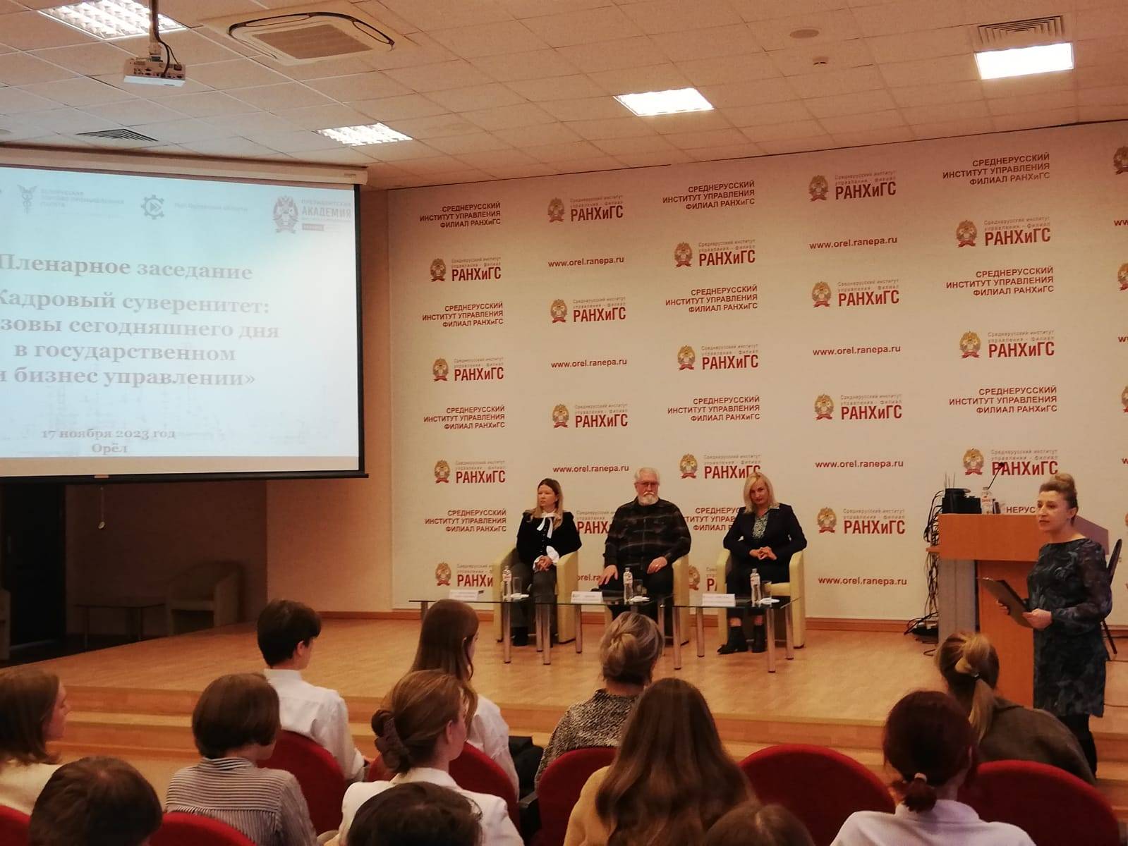 17 ноября 2023 года на площадке Среднерусского институт управления – филиала РАНХиГС состоялось планарное заседание Международного форума «Образование: новые вызовы, лучшие практики и международный опыт». Тема планарного заседания была посвящена кадровому суверенитету, а именно вызовам, с которыми сталкивается государственное и бизнес – управление в условиях новой экономической реальности.