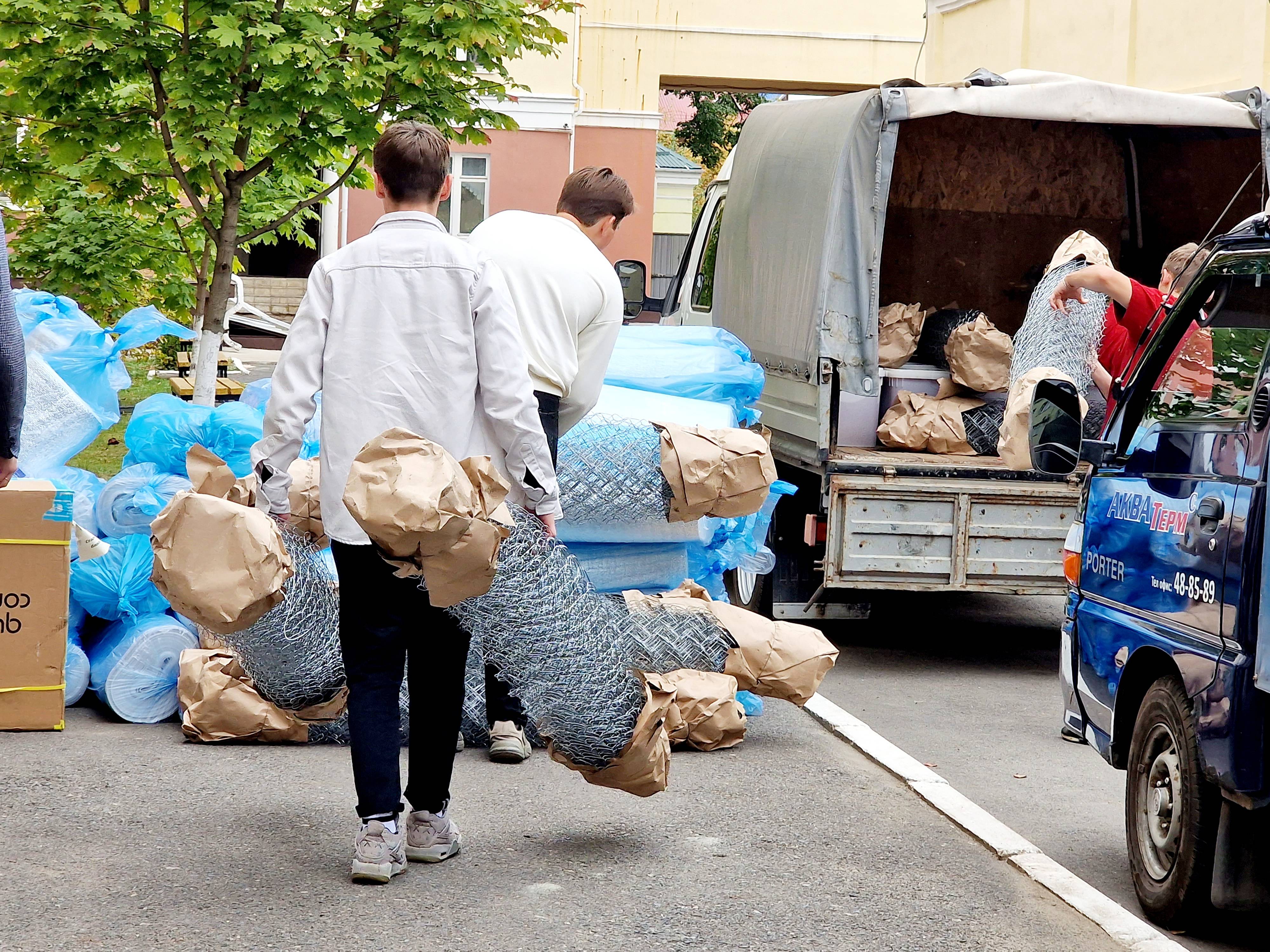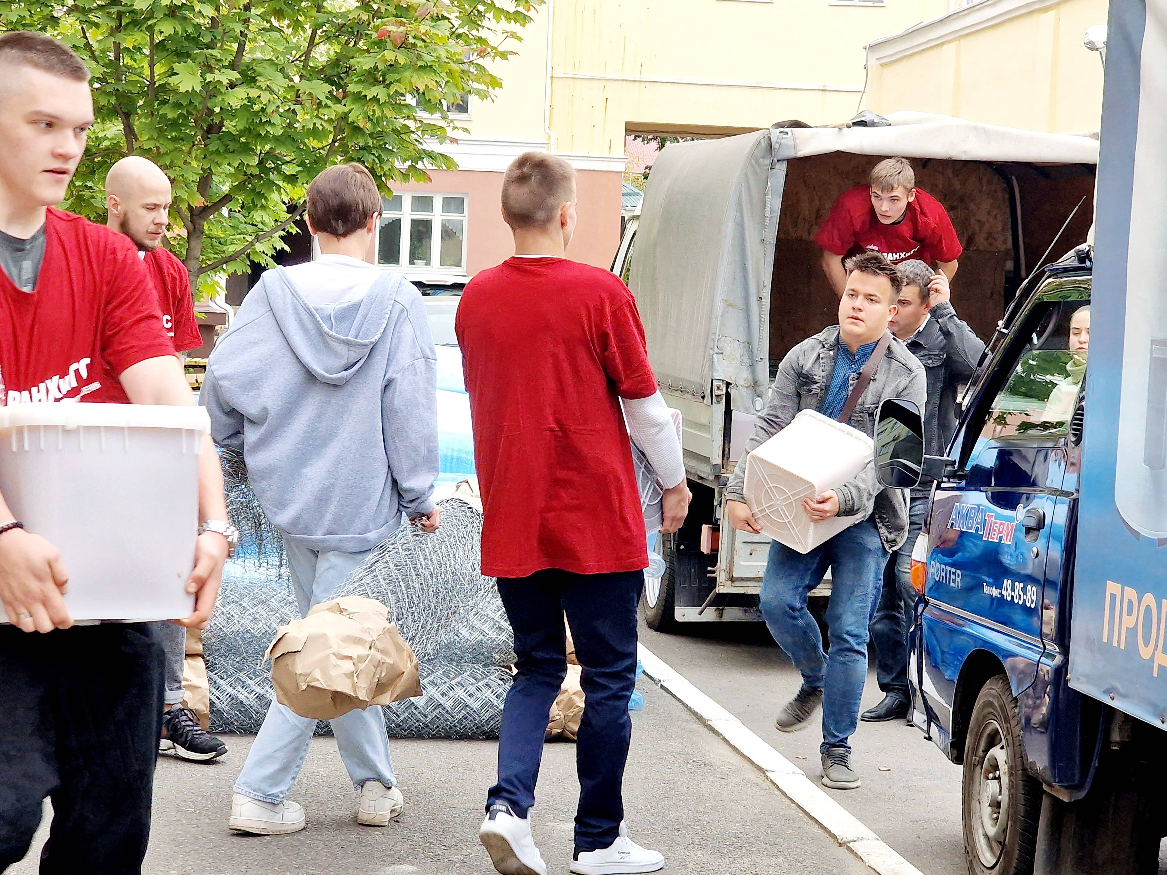 После сбора груза и его подготовки к транспортировке в день отправки все элементы были загружены по машинам. Помощь в загрузке оказали студенты Среднерусского института управления.