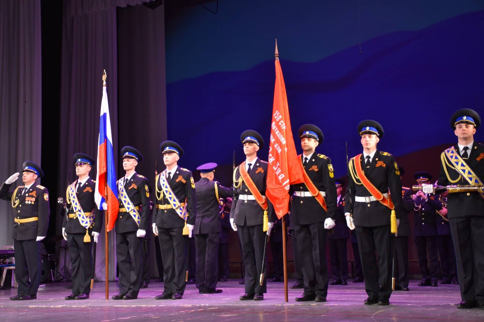 В начале собрания по традиции были вынесены Государственный флаг Российской Федерации и дубликат Знамени Победы и Меч Победы.