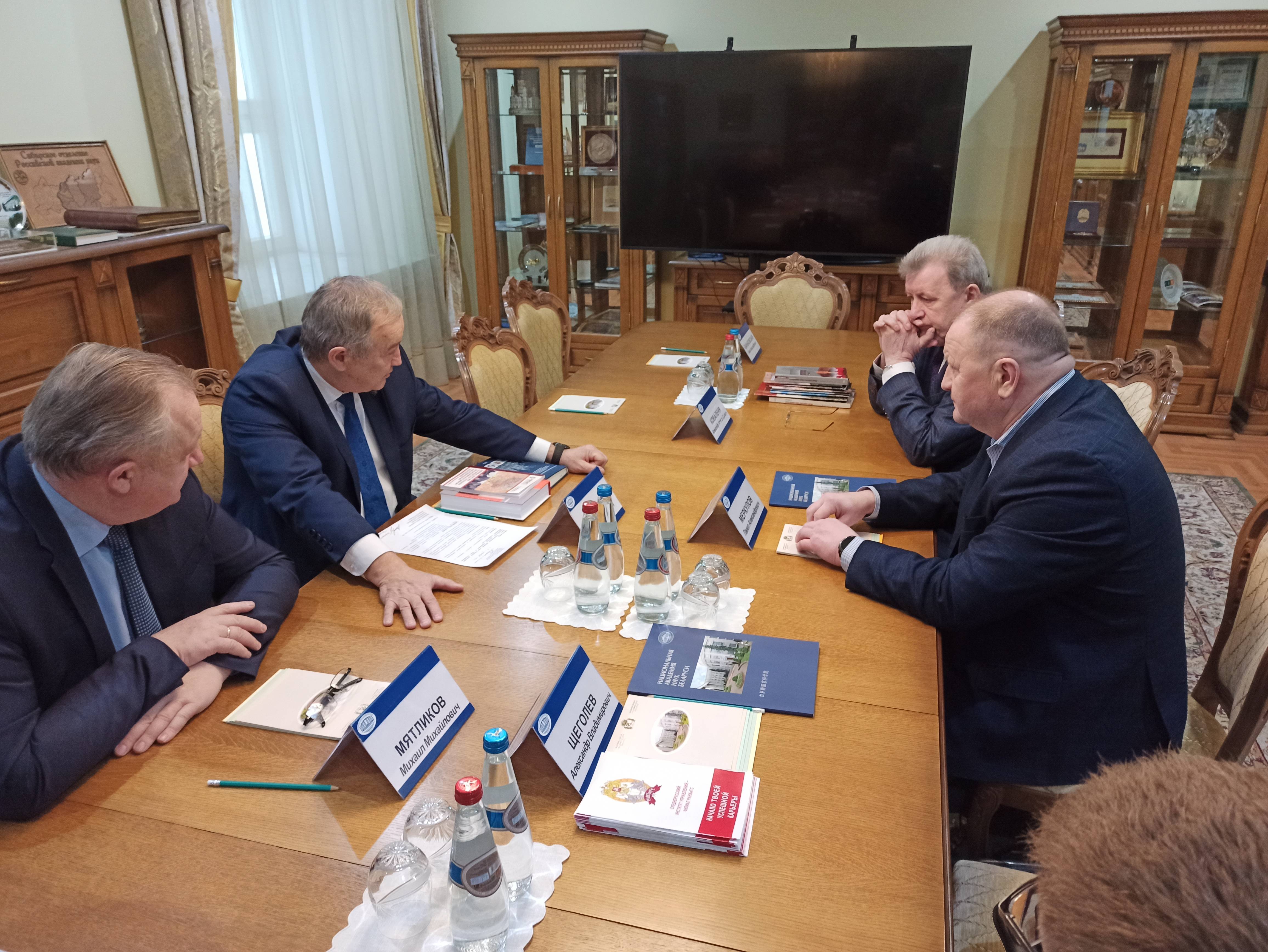 На днях в Национальной академии наук Республики Беларусь состоялась научная встреча директора Среднерусского института управления – филиала РАНХиГС доктора исторически наук, профессора Павла Меркулова с академиком, доктором историческим наук, профессором Александром Коваленя – академиком – секретарем Отделения гуманитарных наук и искусств НАН Беларуси, а также Сергеем Чижиком – первым заместителем Председателя Президиума НАН Беларуси, доктором технических наук, профессором и академиком. В ходе встречи было принято коллегиальное решение о совместных научных исследованиях в указанной области.