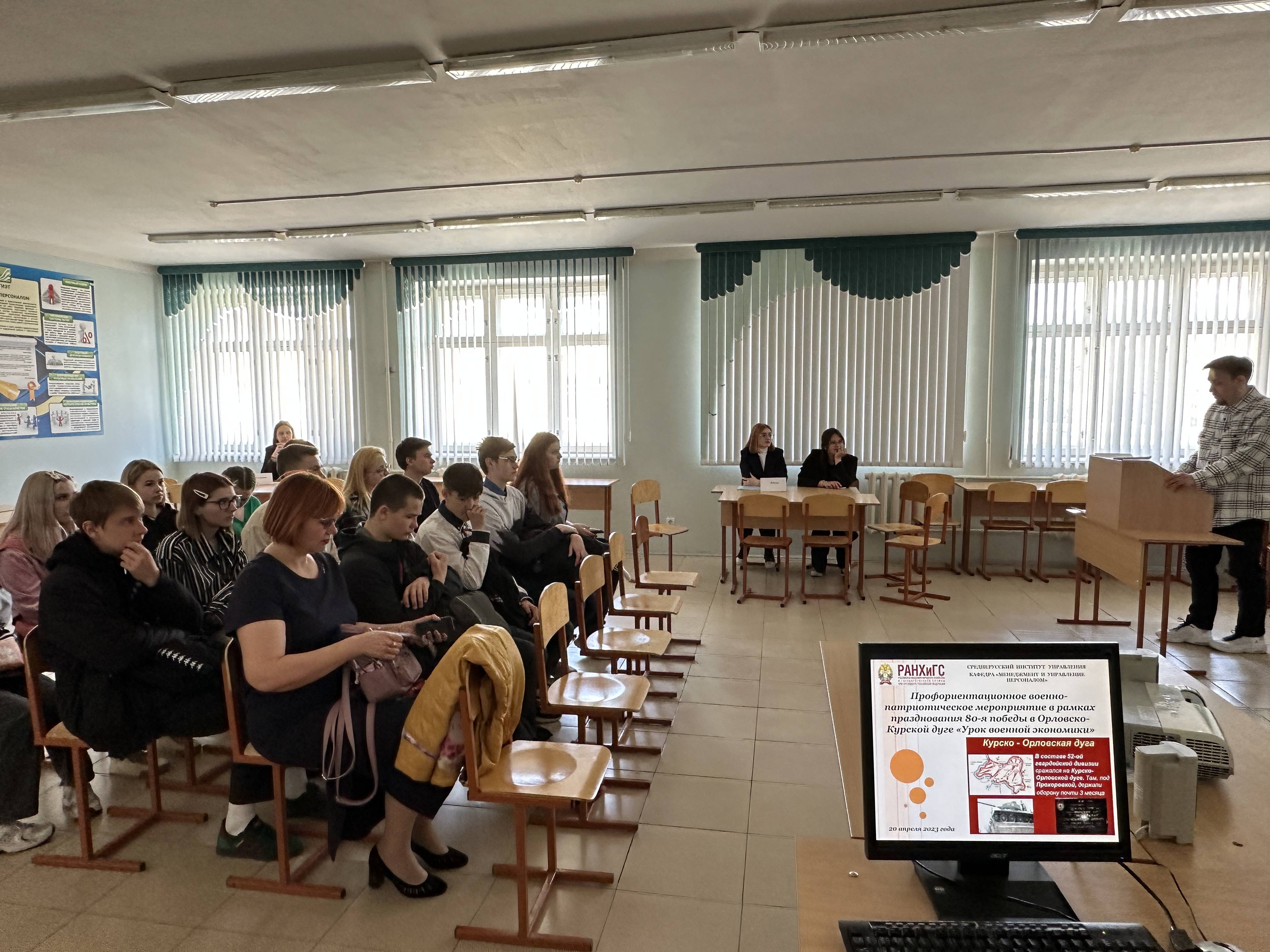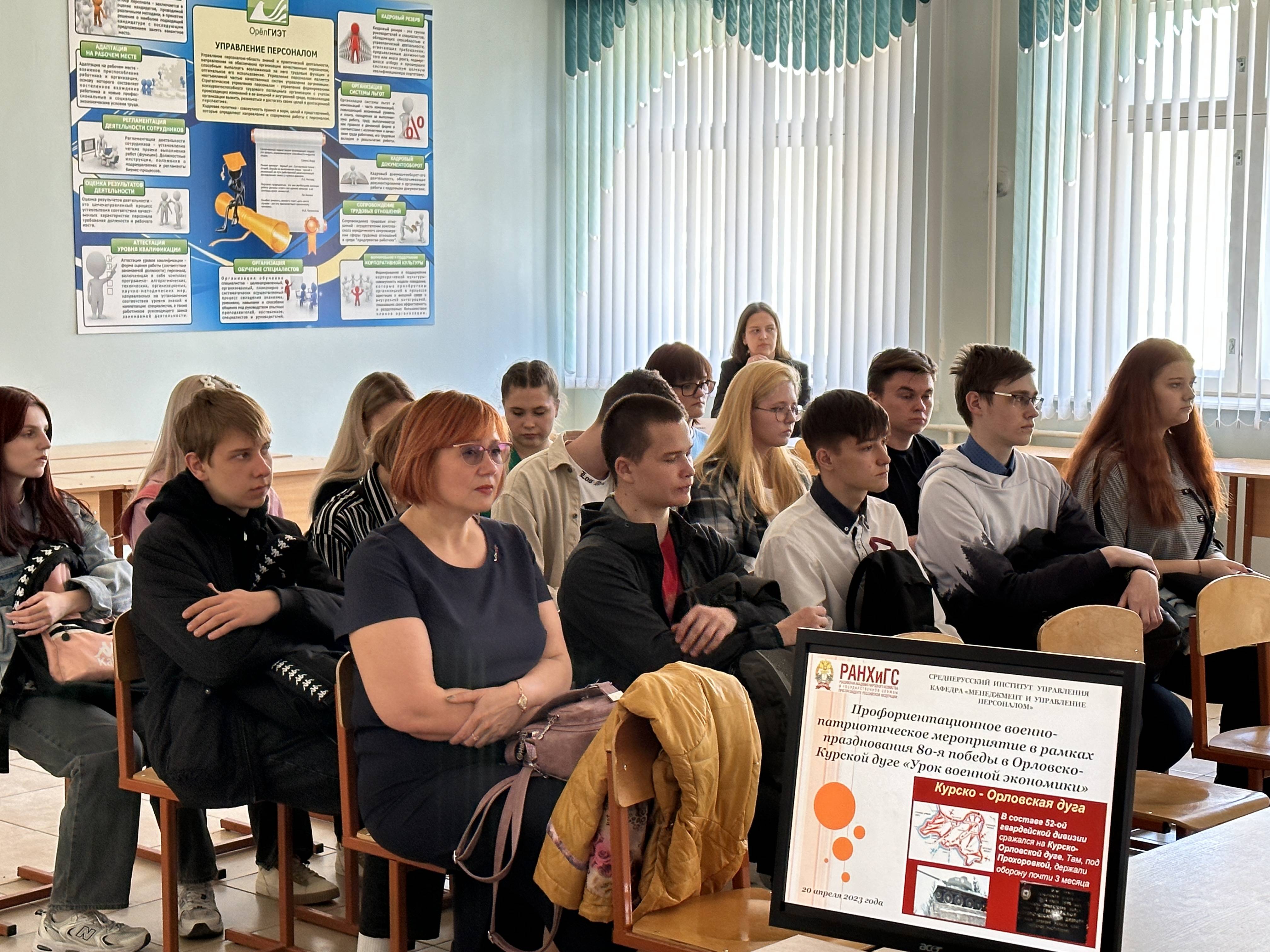 20 апреля 2023 года, в рамках мероприятий, посвященных празднованию 80-летия освобождения Орла от немецко-фашистских захватчиков, в школе № 26 города Орла прошло военно-патриотическое мероприятие для учащихся 10 класса «Урок военной экономики».