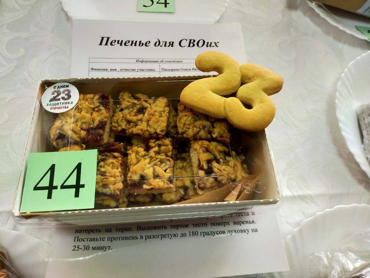 Участникам была предоставлена возможность проявить свои кулинарные способности и поздравить бойцов ВС РФ с Днем защитника Отечества. Для участия в конкурсе нужно было испечь 2 изделия из любого вида теста - одно для выставки, а другое для дегустации. Необходимо было также написать письмо солдатам, принимающим участие в специальной военной операции.