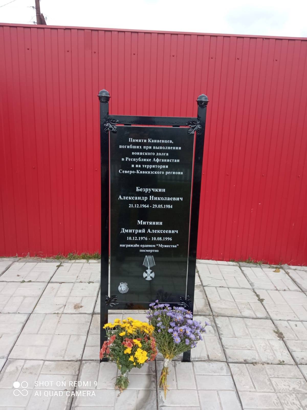 20 октября в селе Канаевка Пензенской области была открыта мемориальная доска в память о погибших при выполнении воинского долга Александре Безручкина (в Афганистане) и Дмитрии Митянине (в Чеченской республике)