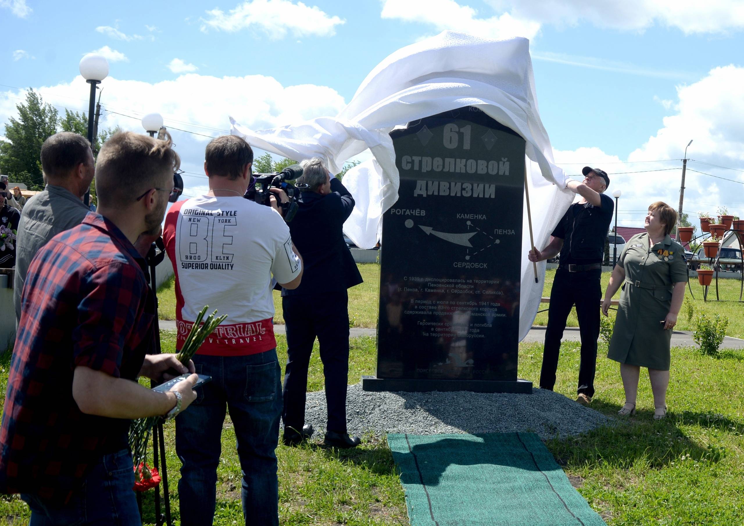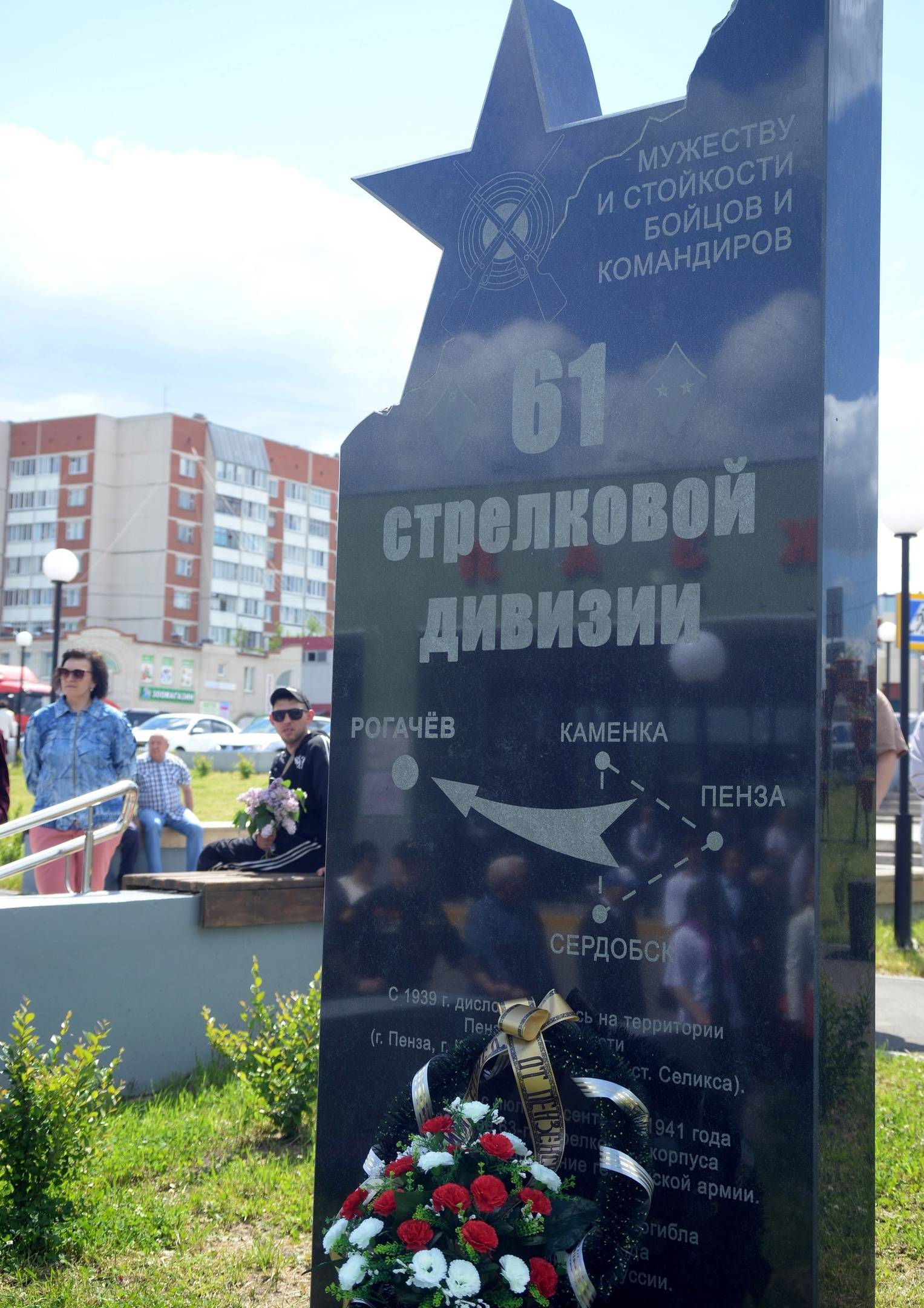 Это первый памятник в области, посвященный памяти 61-й дивизии, которая в составе 63-го стрелкового корпуса впервые в истории Великой Отечественной войны освободила сразу два города: Рогачев и Жлобин.