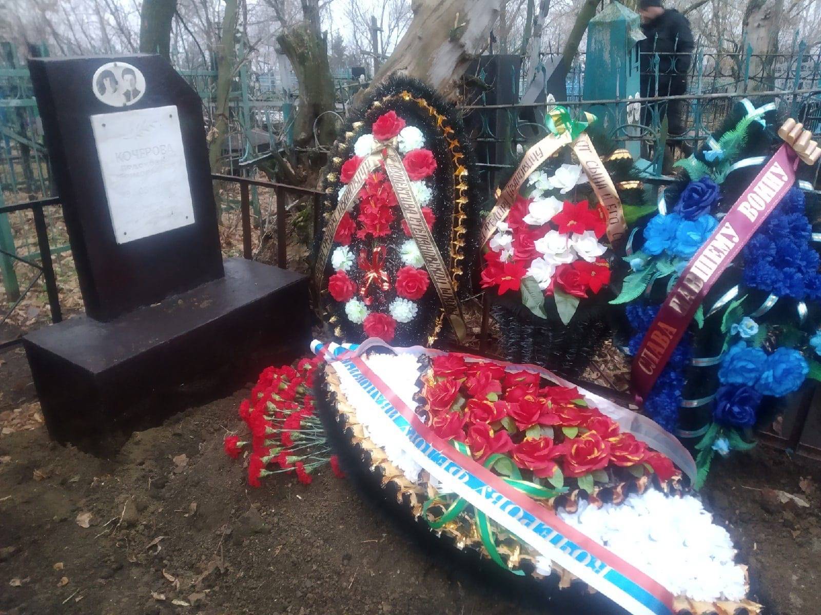 Останки красноармейца подзахоронены в могилу его супруги Кочеровой Прасковьи Григорьевны (1905-1965) на кладбище села Трофимовка Степановского сельсовета Бессоновского района.