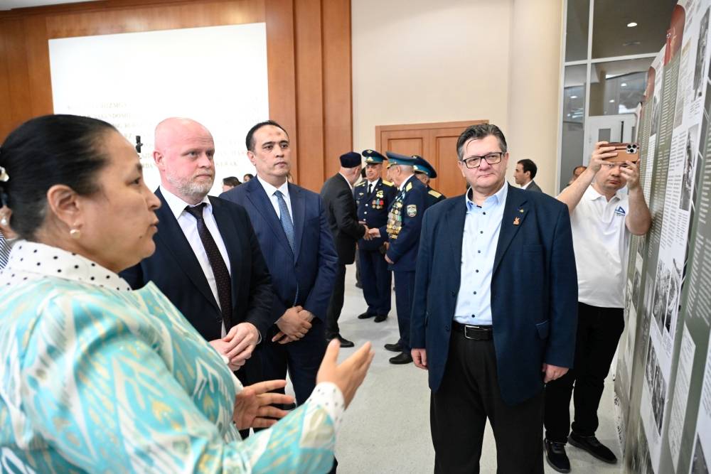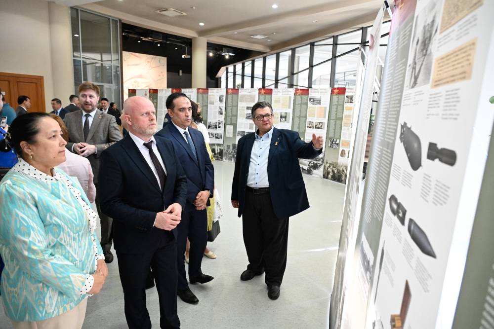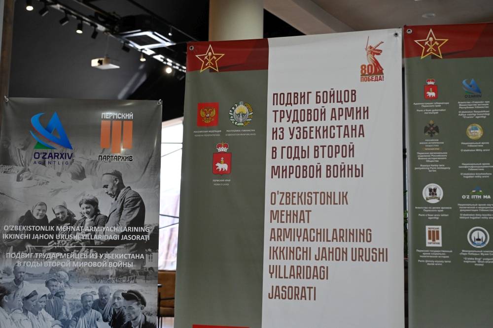 Затем гостям мероприятия представили созданную в Пермском крае передвижную выставку «Подвиг бойцов Трудовой Армии из Узбекистана в годы Второй мировой войны». Как рассказали организаторы, выставка посвящена малоизвестным событиям, связанным с работой в годы Великой Отечественной войны мобилизованных на трудовой фронт жителей Узбекской ССР в различных отраслях народного хозяйства Советского Союза. В 1942-1943 гг. около 150 тысяч представителей Узбекистана были направлены для работы на предприятия и шахты в различные регионы СССР. В Пермском крае (Молотовской области) они участвовали в производстве артиллерийских орудий и двигателей самолетов, в изготовлении снарядов и мин, в добыче угля и заготовке древесины и во многом другом, без чего было бы невозможно достижение общей Победы.
